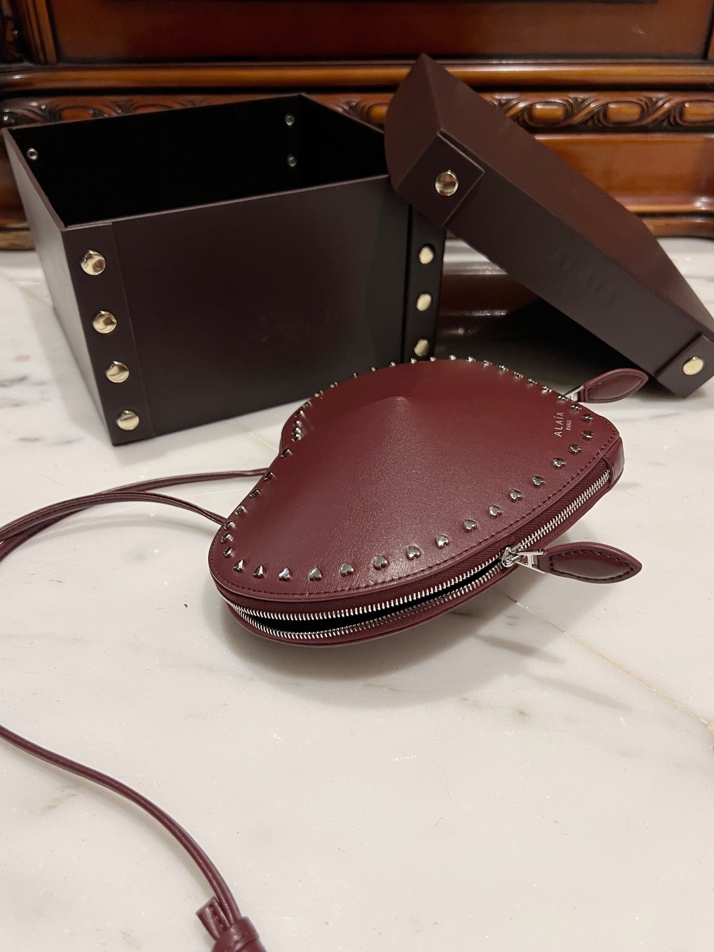 LE COEUR BAG 21 IN BURGUNDY RED CALFSKIN WITH STUDDED HEART