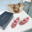 Alaia 25 Laminated Fishnet Ballet Flats Pink Lambskin 241053