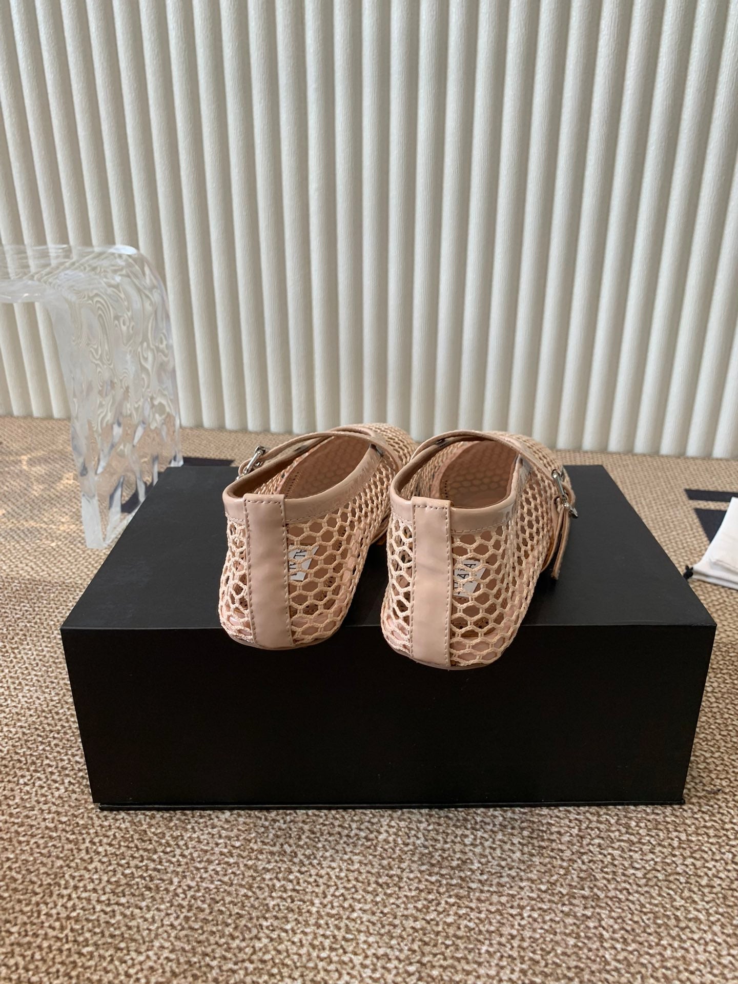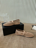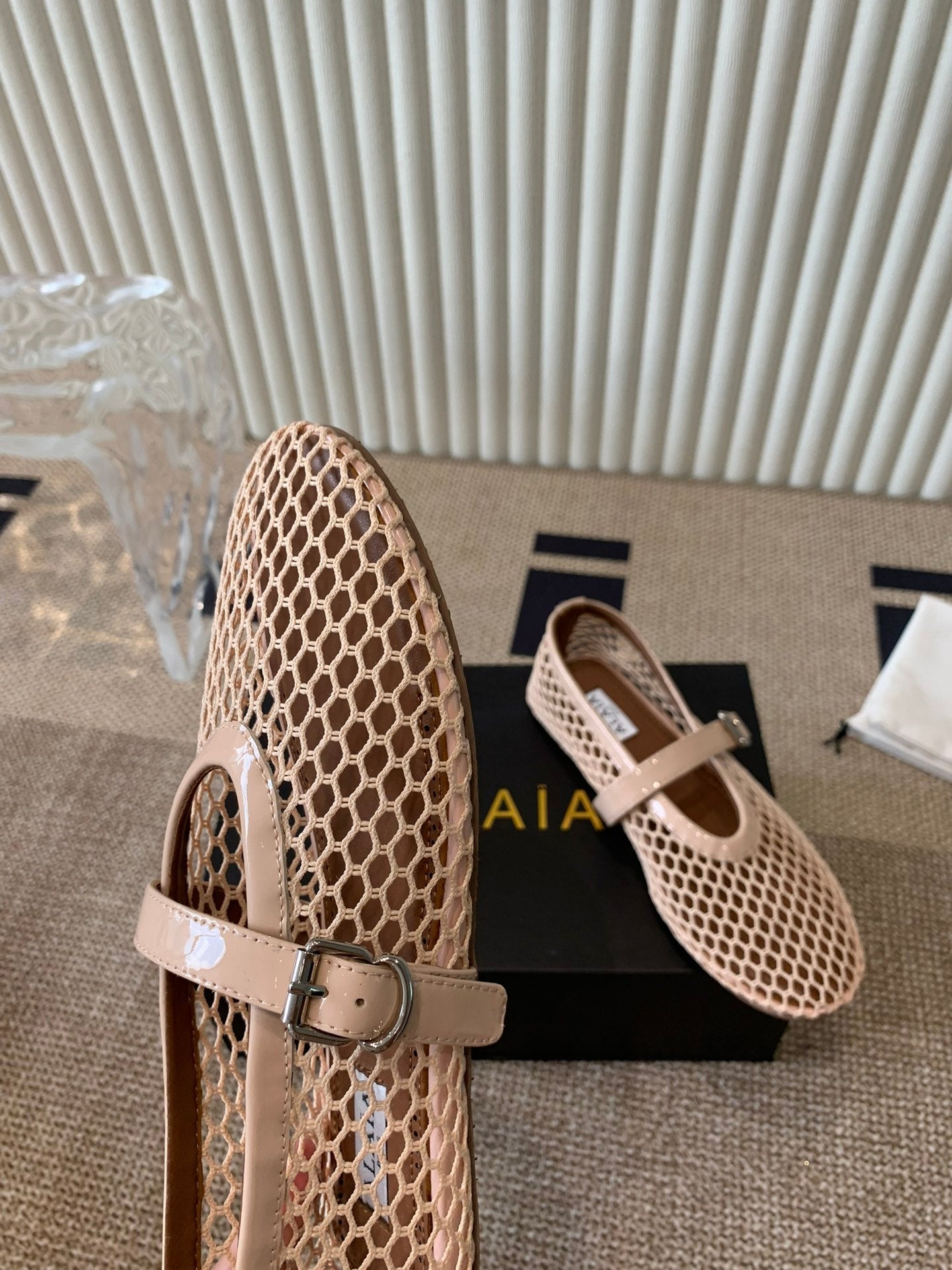 ballet flat in fishnet beige lambskin