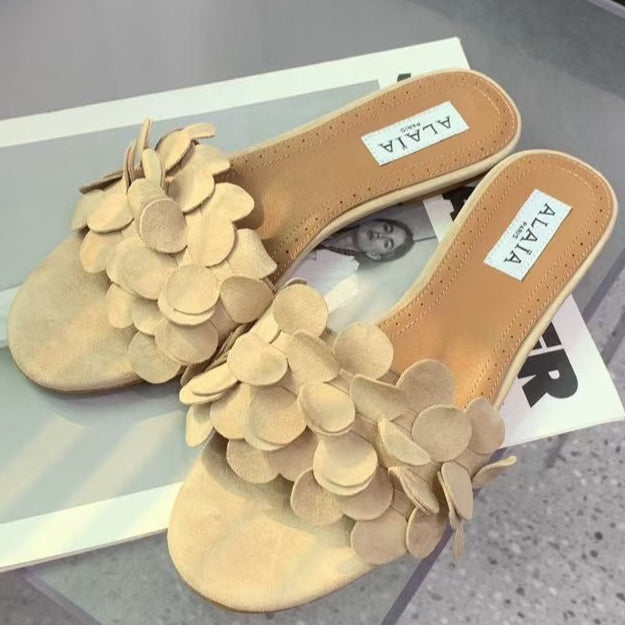 Alaia 25 Flower Slippers White Sheepskin 293161