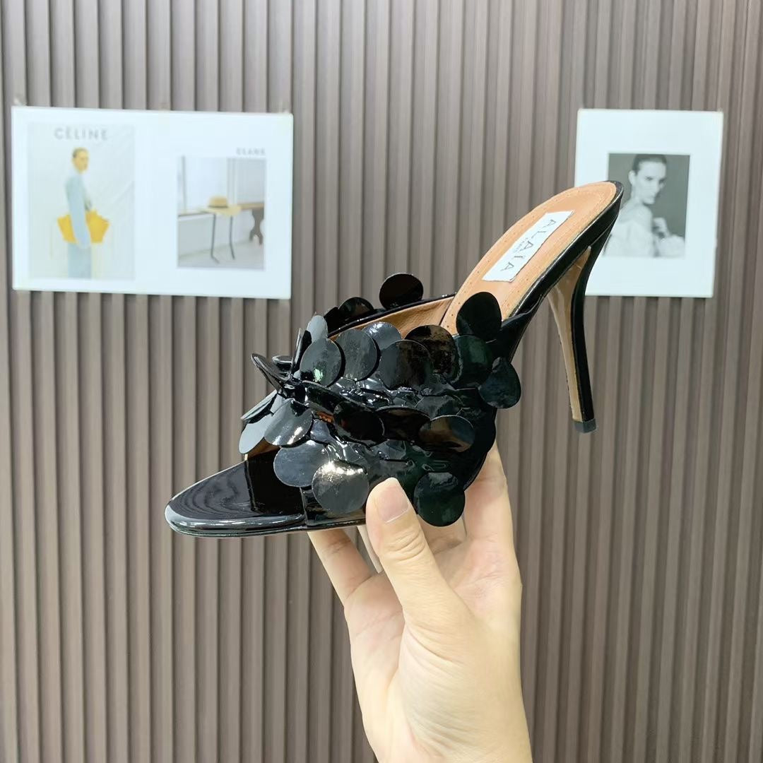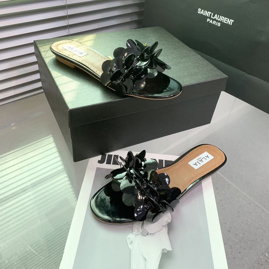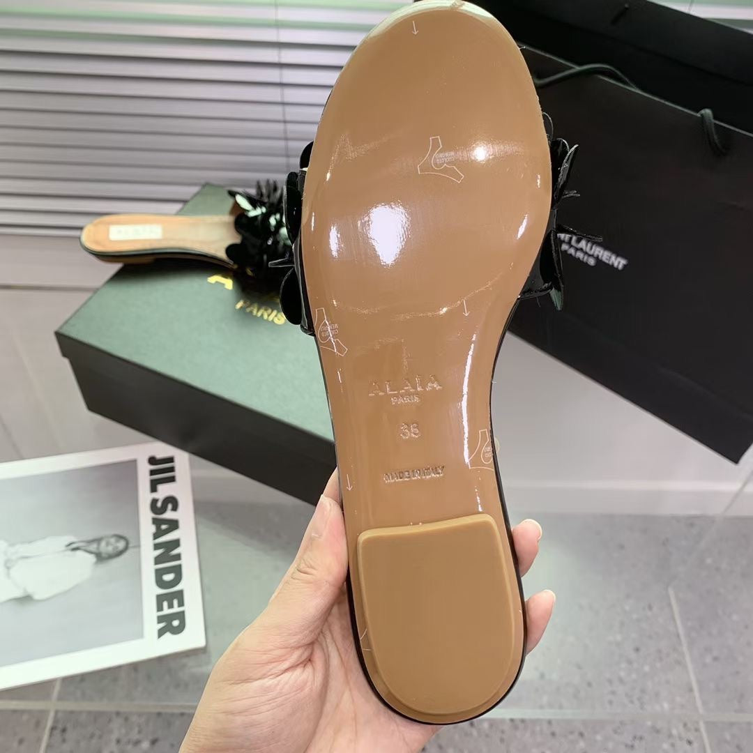 Alaia 2025 Hollow Slippers Black Leather 293653