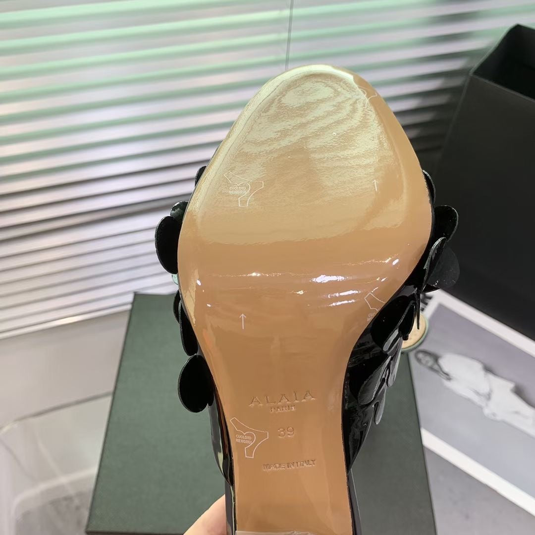 Alaia 25 Flower Slippers Glossy Black Sheepskin 293160