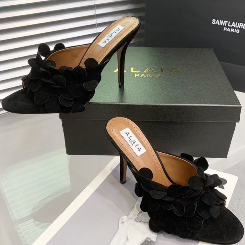 Alaia 25 Flower Slippers Black Sheepskin 293157