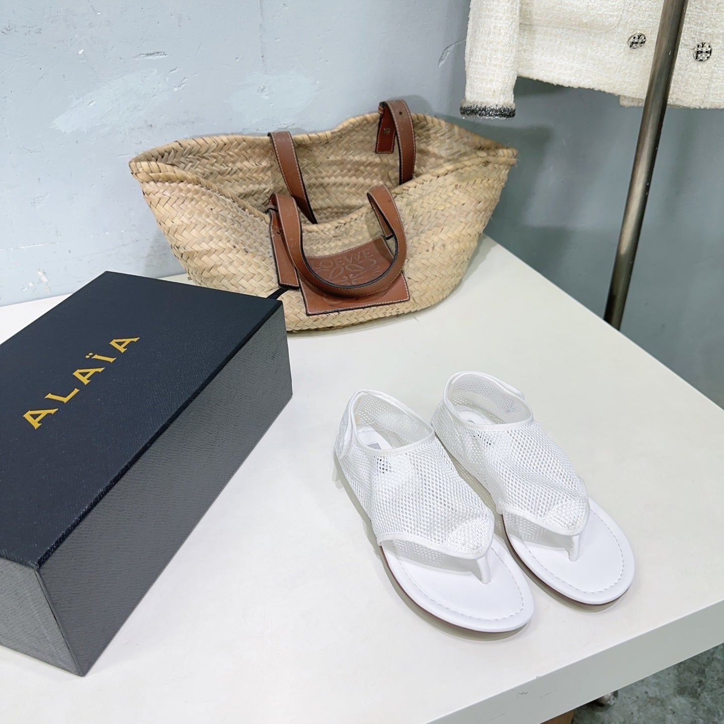 Alaia 25 Thong Sandals White Fishnet Sheepskin 315964