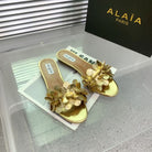 Alaia 25 Flower Slippers Gold Sheepskin 293162