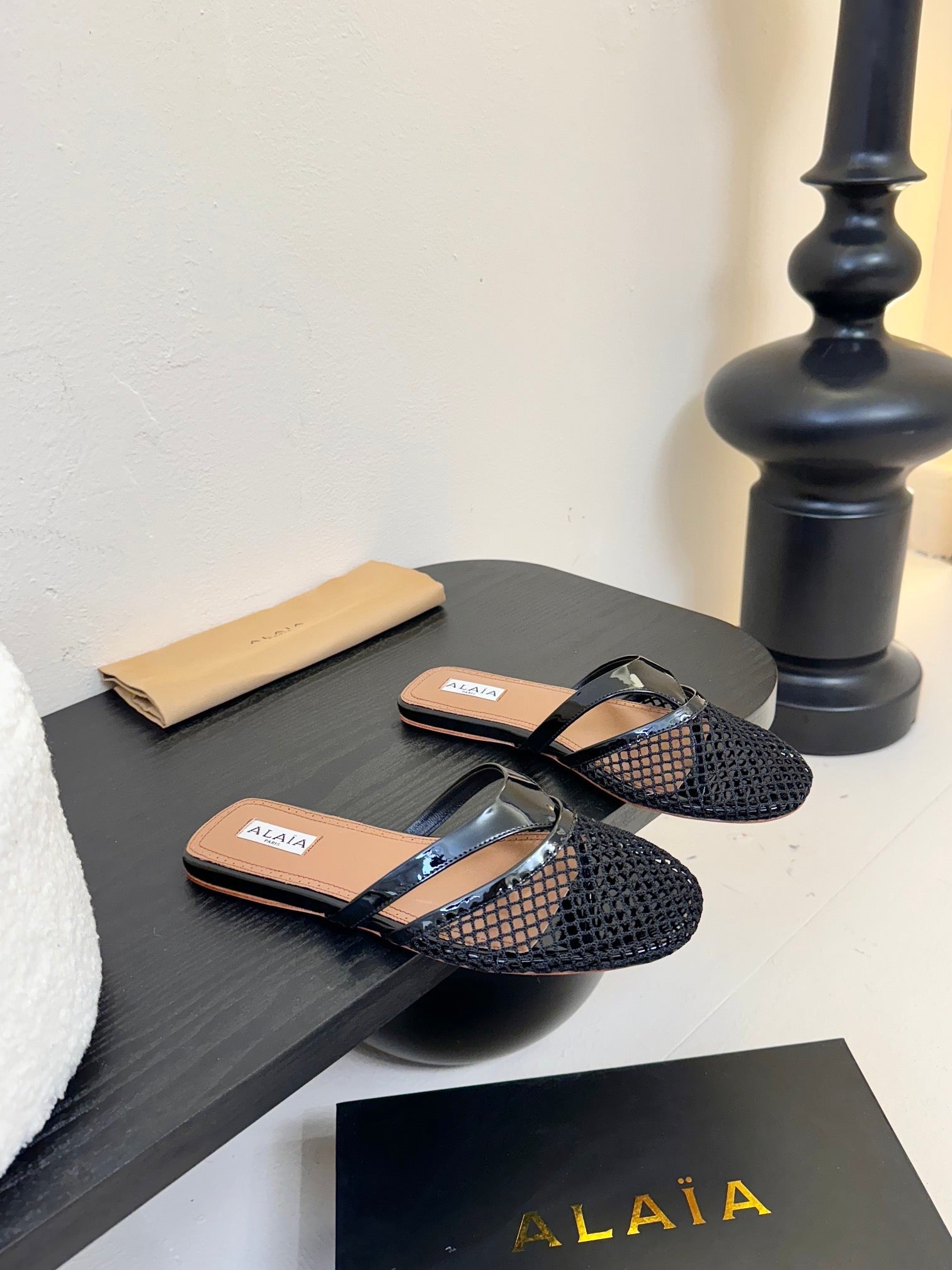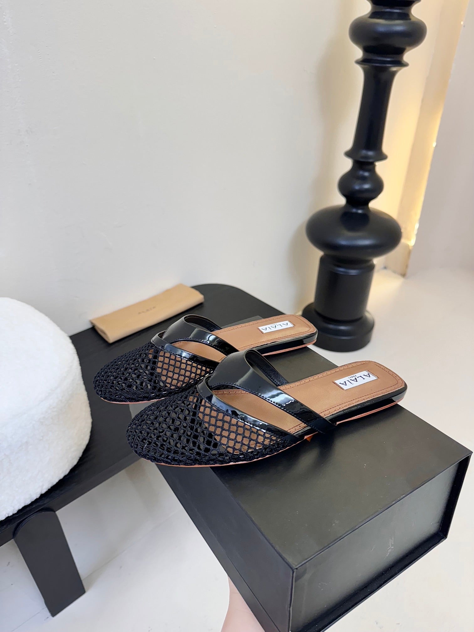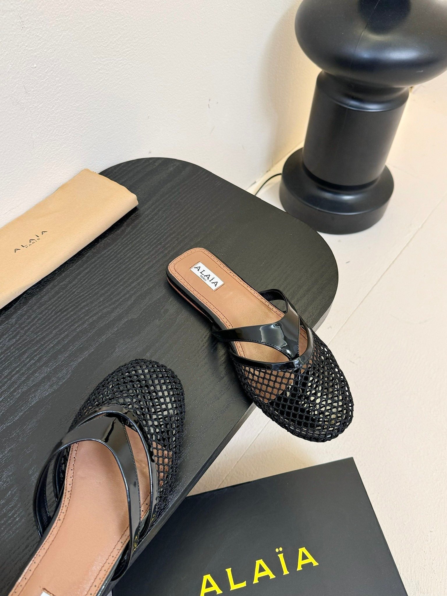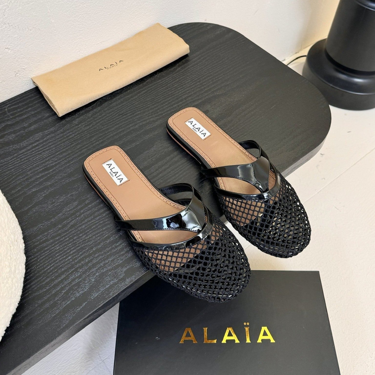 Alaia Fishnet Mule Black Leather 235516