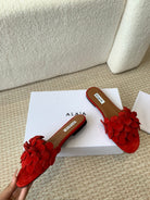 ALAIA FLAT MULE IN CHERRY RED SUEDE
