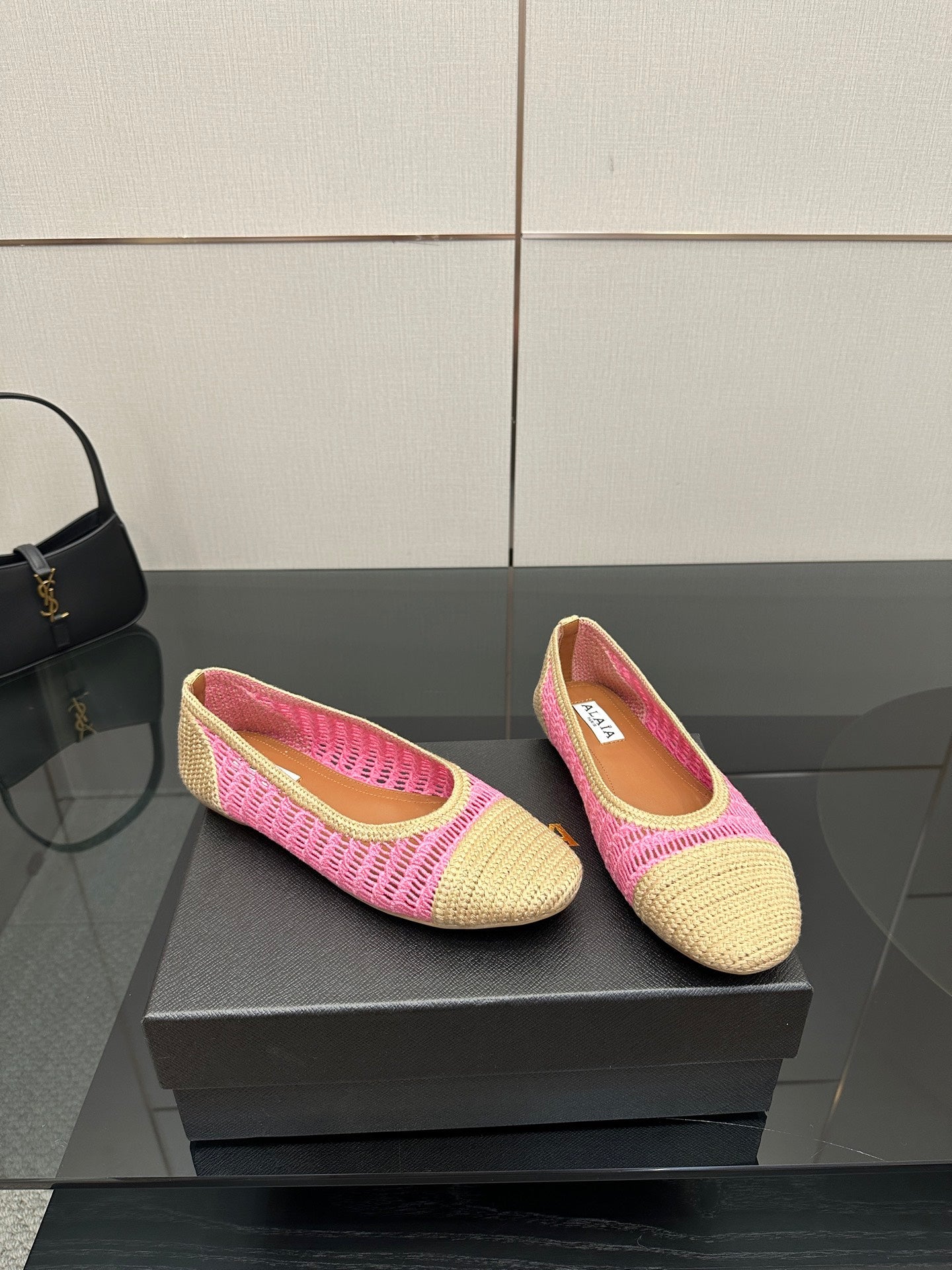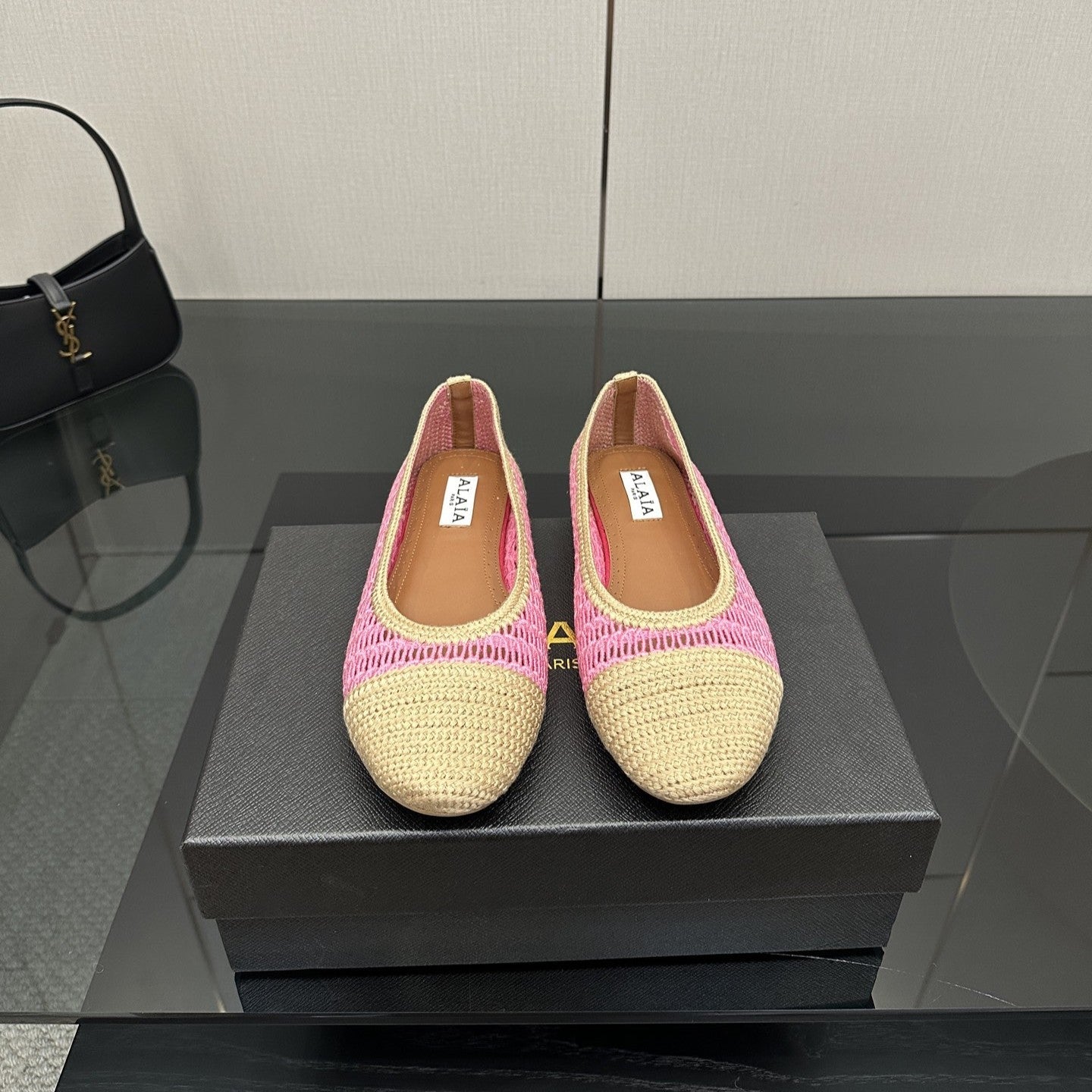 Alaia 2025 Ballet Flat Beige Pink Raffia 433751