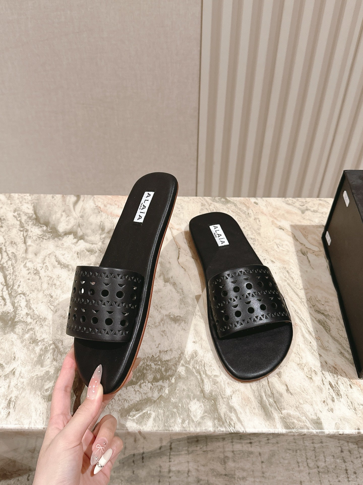 Alaia 2025 Hollow Slippers Black Leather 293653
