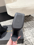 Alaia 2025 Square Toe High Heeled Ankle Boot Black Calfskin 558666