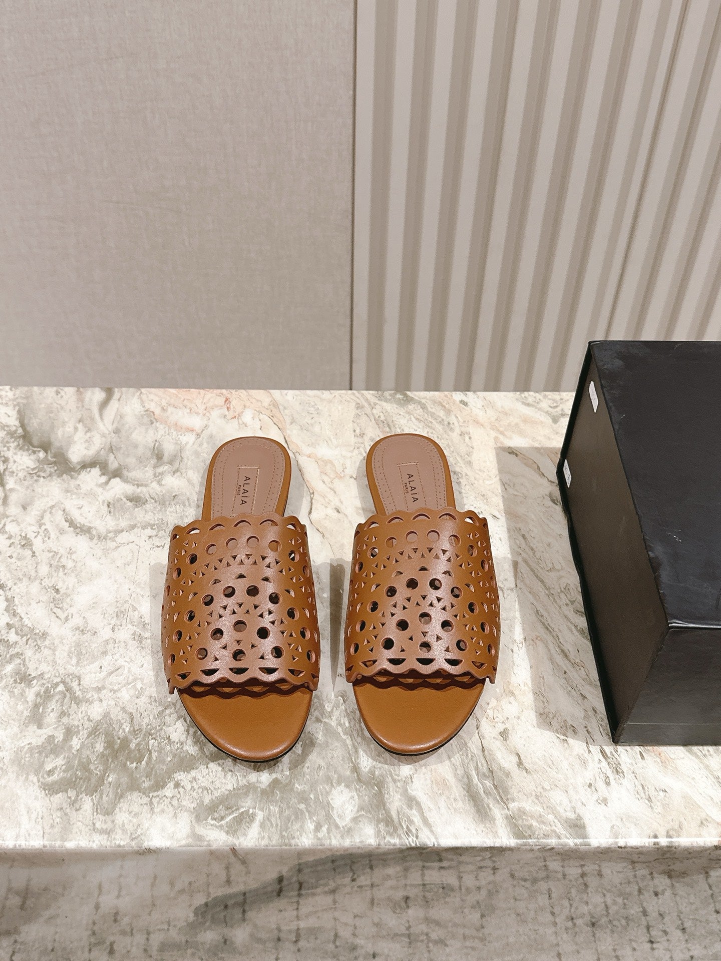 Alaia 2025 Vienne Slippers Brown Lambskin 293658