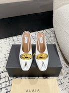 Alaia 25 Azzedine High Heels Mules With Gold Hardware White Calfskin 293186