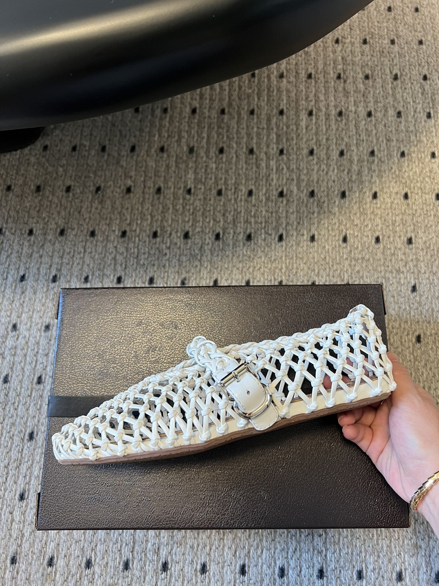 Alaia 25 Braided Ballet Flats White Cowhide 303676