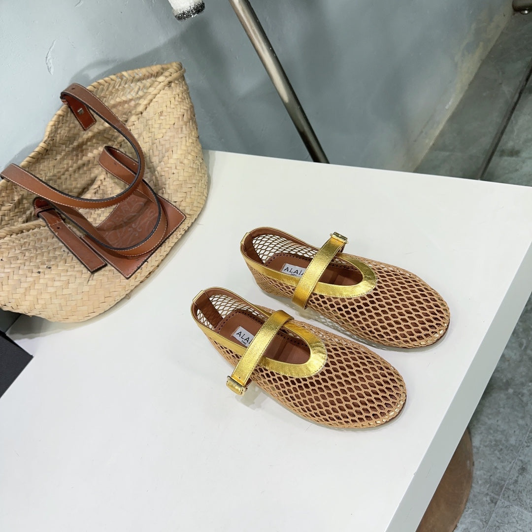 Alaia 25 Laminated Fishnet Ballet Flats Gold Lambskin 576441