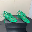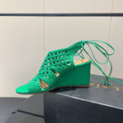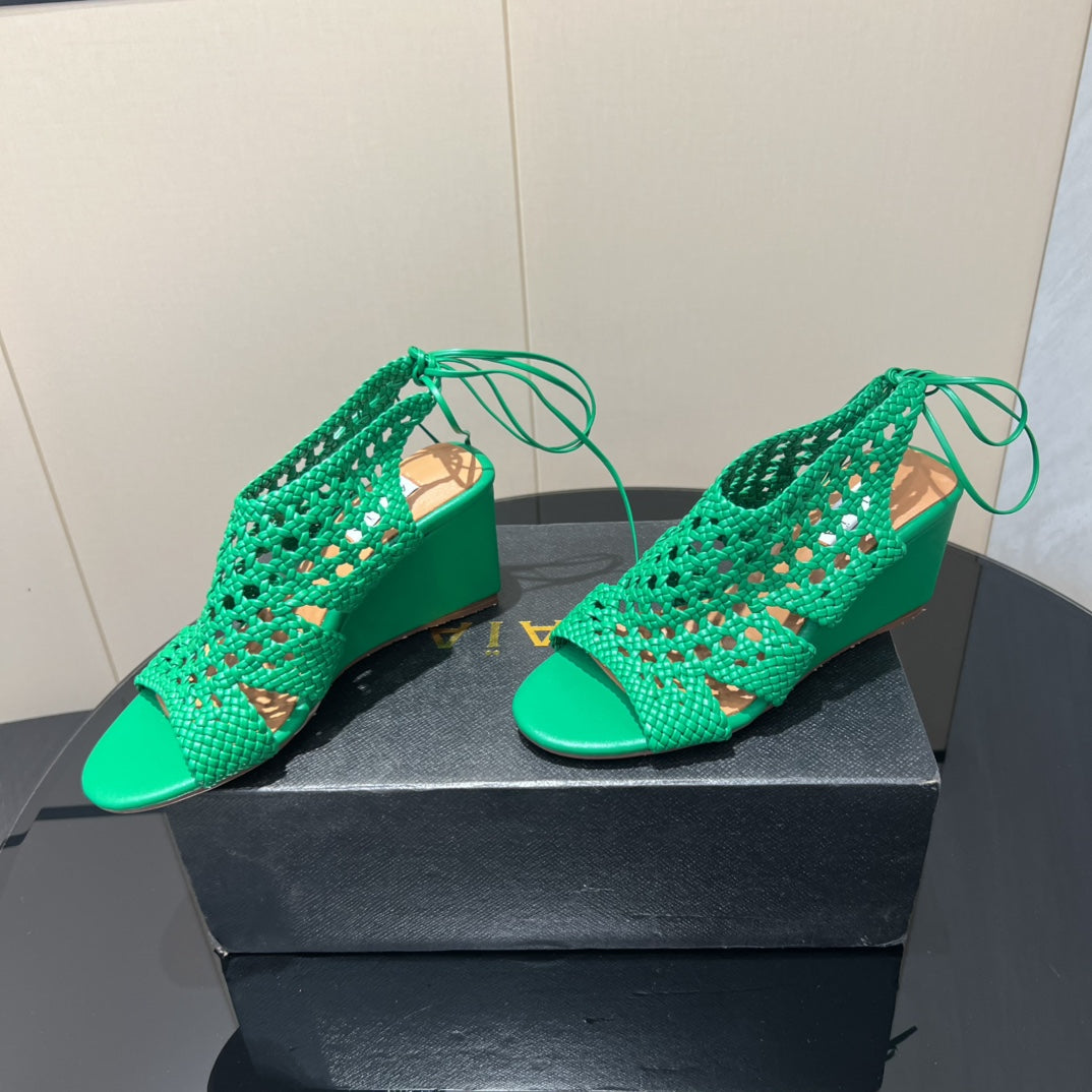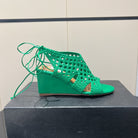 Alaia 25 Round-toe Braided Wedge Sandals 75mm Green Woven Leather 433567