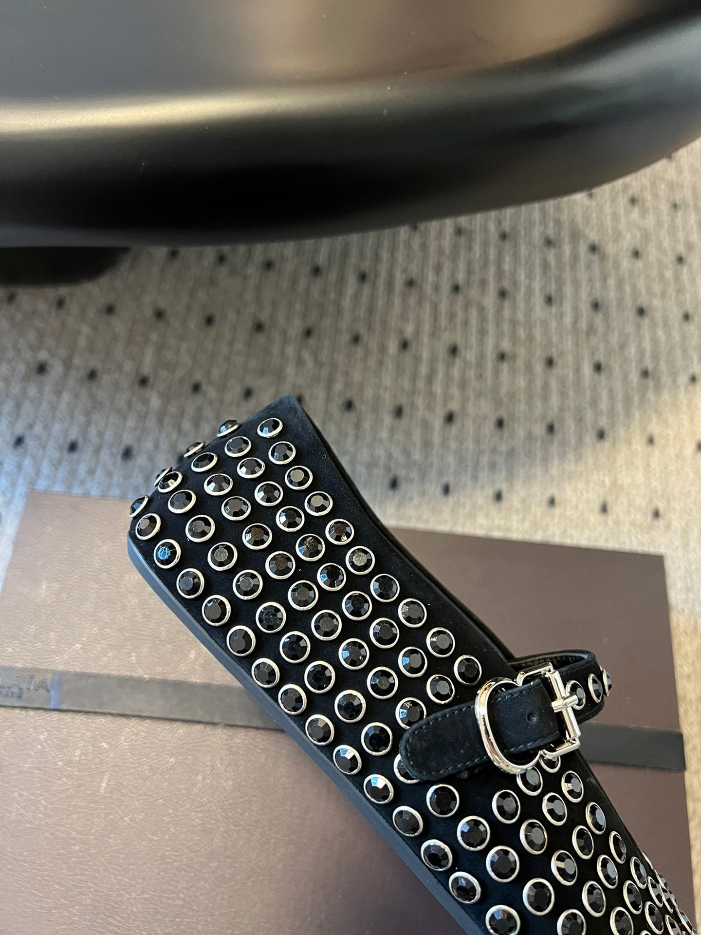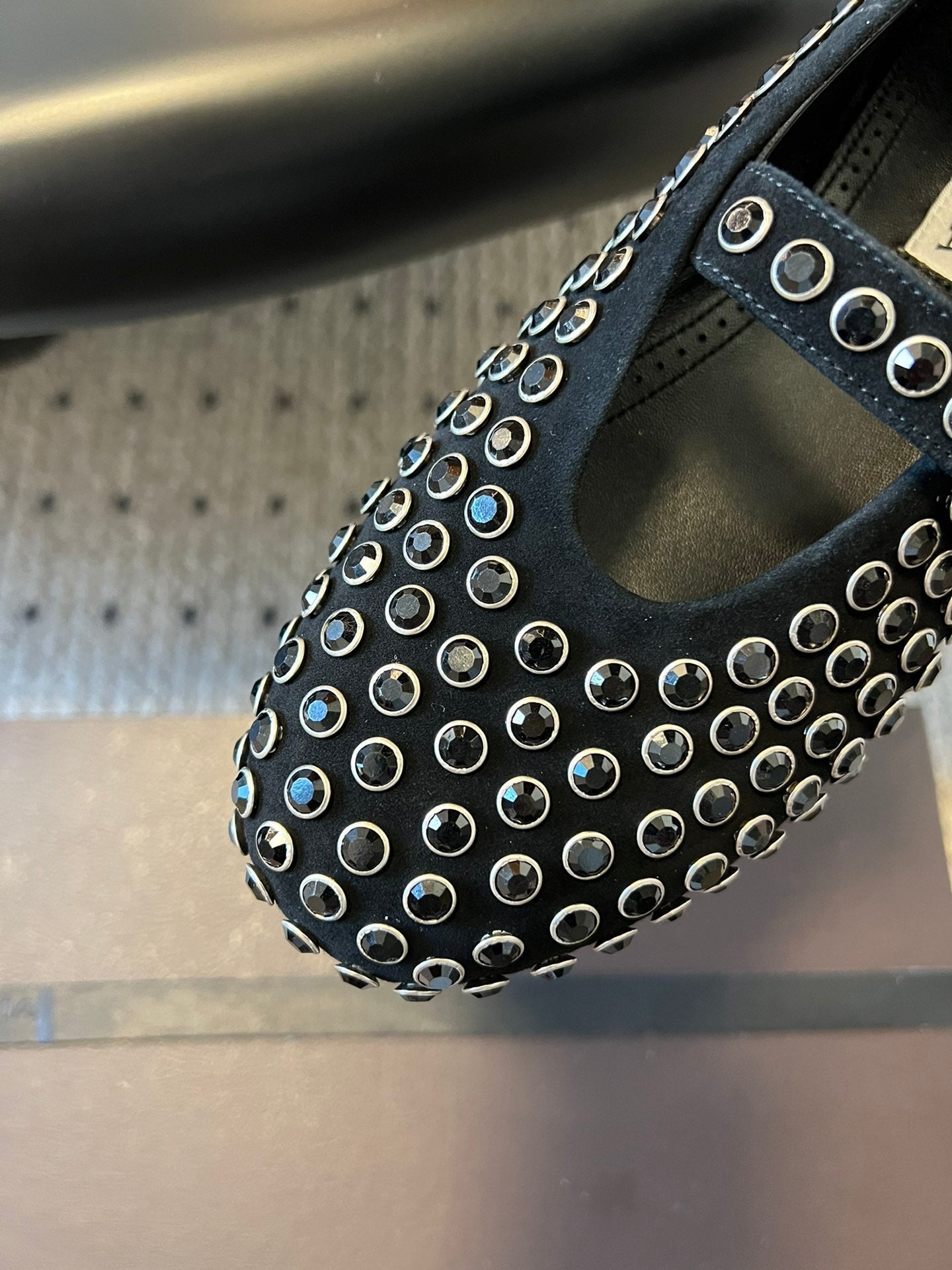 Alaia 25 Strass Ballet Flats Black Suede Goatskin 303726