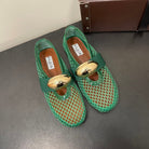 ALAIA BALLET FLATS IN COOL GREEN MESH FISHNET WITH GOLD HARDWARE