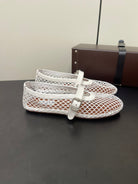 ALAIA BALLET FLATS IN WHITE MESH FISHNET