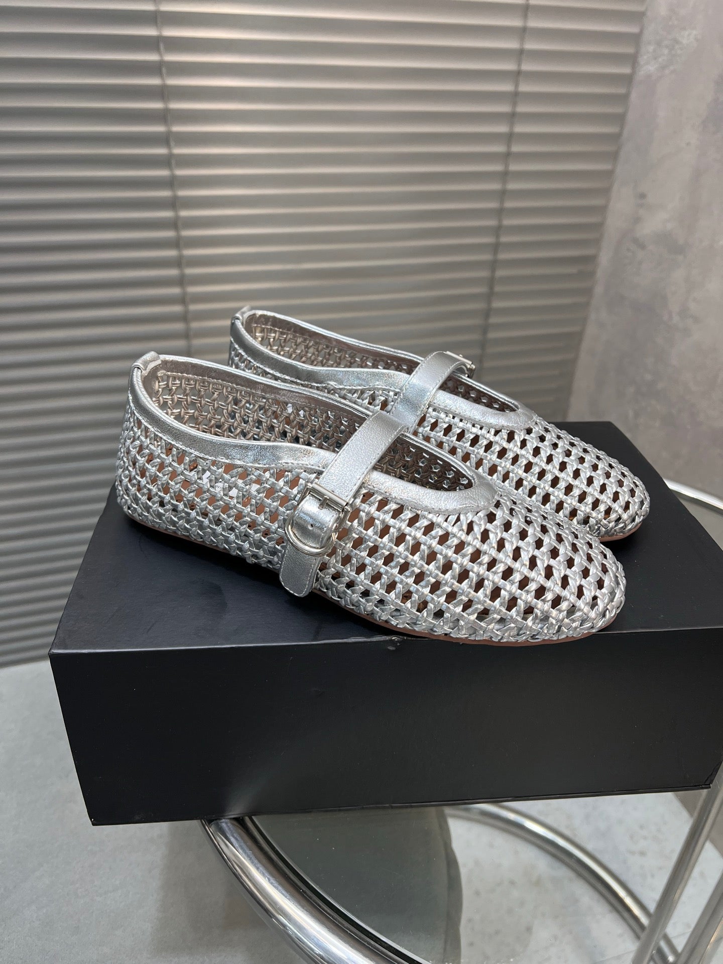 Alaia Braided Hollow Ballet Flats Silver Cowhide 300042