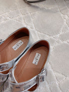 ALAIA CRISS CROSS BALLET FLAT IN SILVER LAMBSKIN