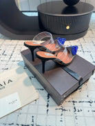 Alaia Heart With Crystals 90mm Heels Mules Dark Blue Sheepskin 800948