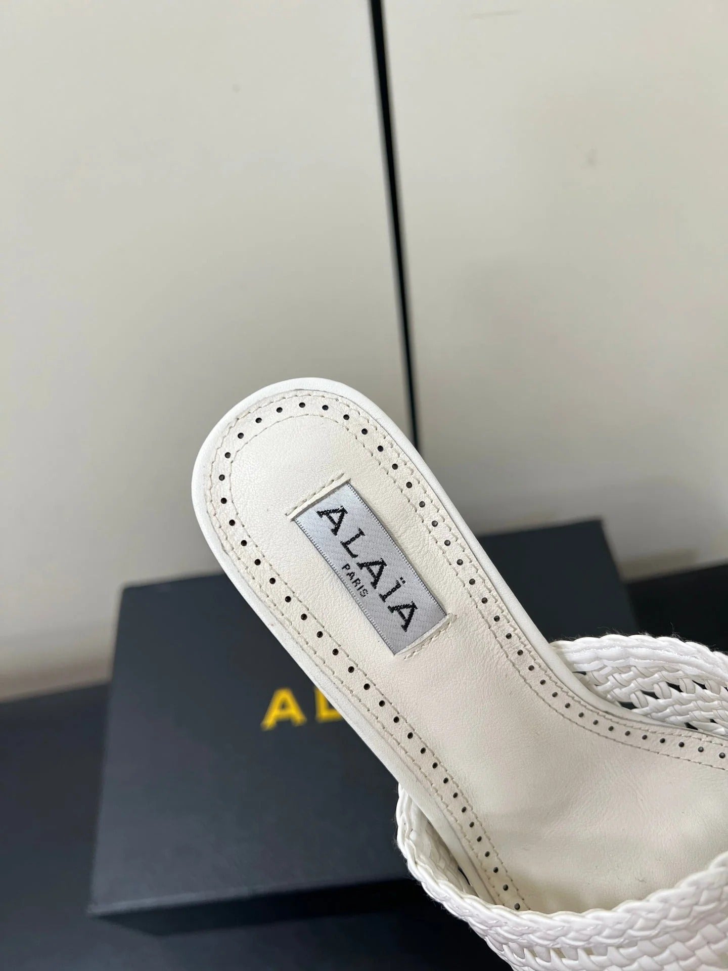 Alaia High Heel 25s 70 Mm In White Lambskin With Woven Pattern