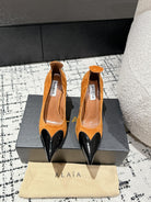 ALAIA HIGH PUMPS 10CM IN COPPER BROWN SUEDE MIX BLACK CALFSKIN