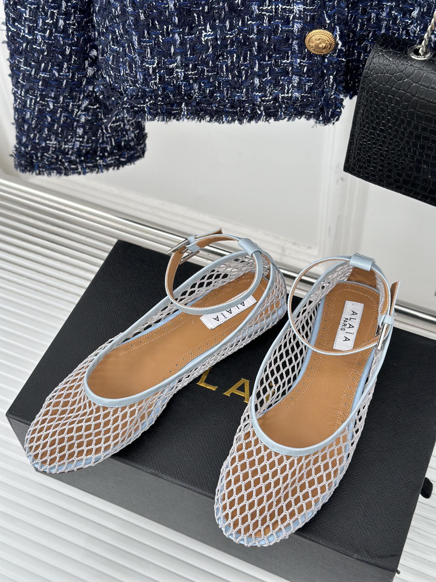 Alaia Mary Jane Ballet Flat Light Blue Lambskin 293231