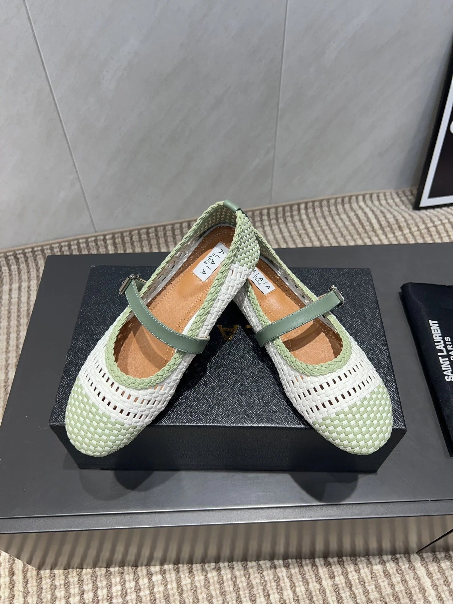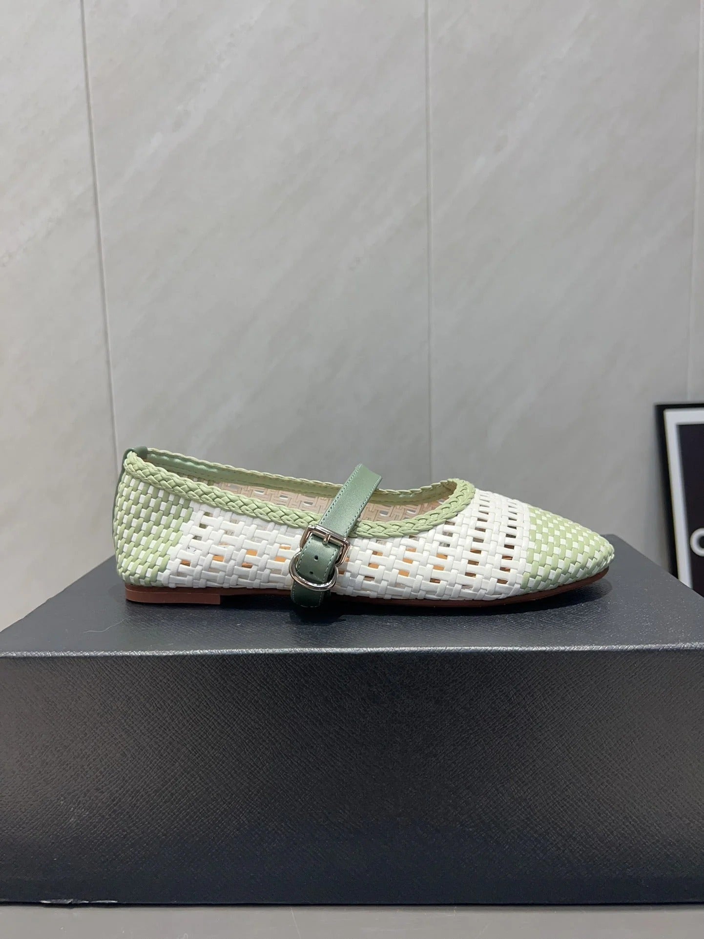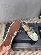 Alaia Mary Jane Flats Woven Pattern 25s In White Mix Pastel Green Calfskin