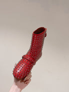 ALAIA SHORT BOOTS IN CHERRY RED LAMBSKIN ATTACH RHINSTONES
