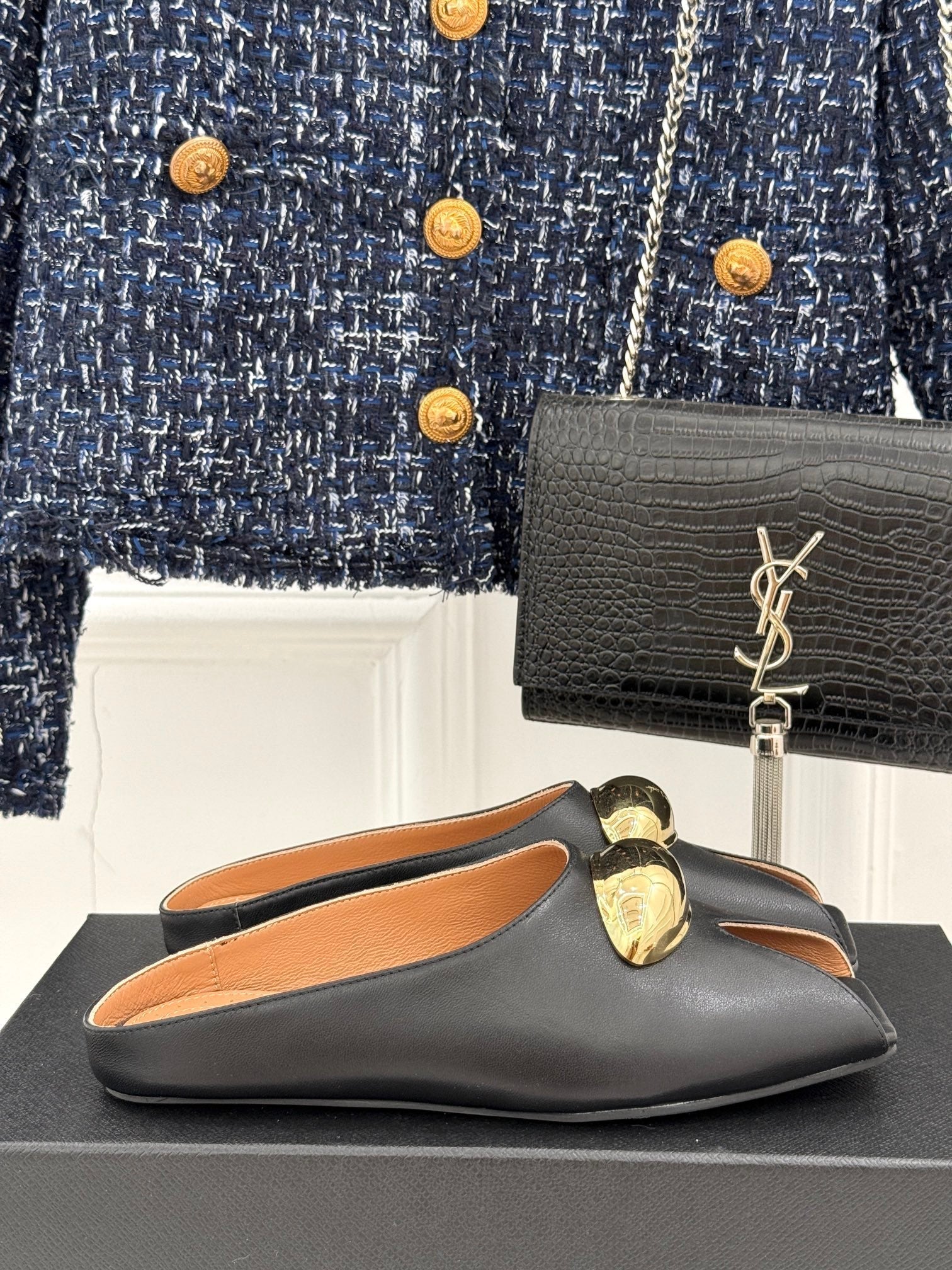 Alaia Slipper With Gold Hardware Black Calfskin 293201