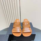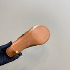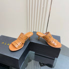 Alaia Vienne Cutout Kitten-Heel Slide Sandals Brown Sheepskin 299662