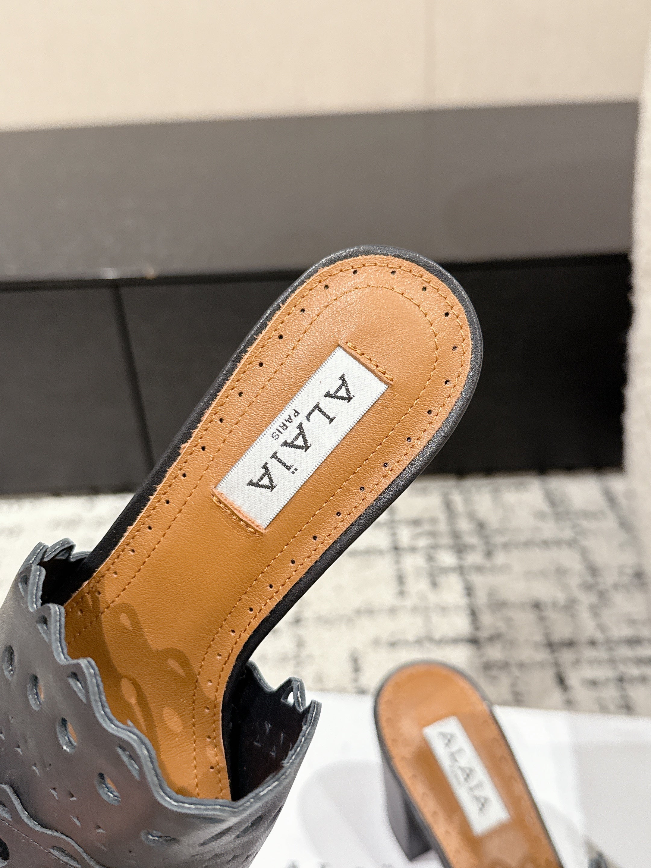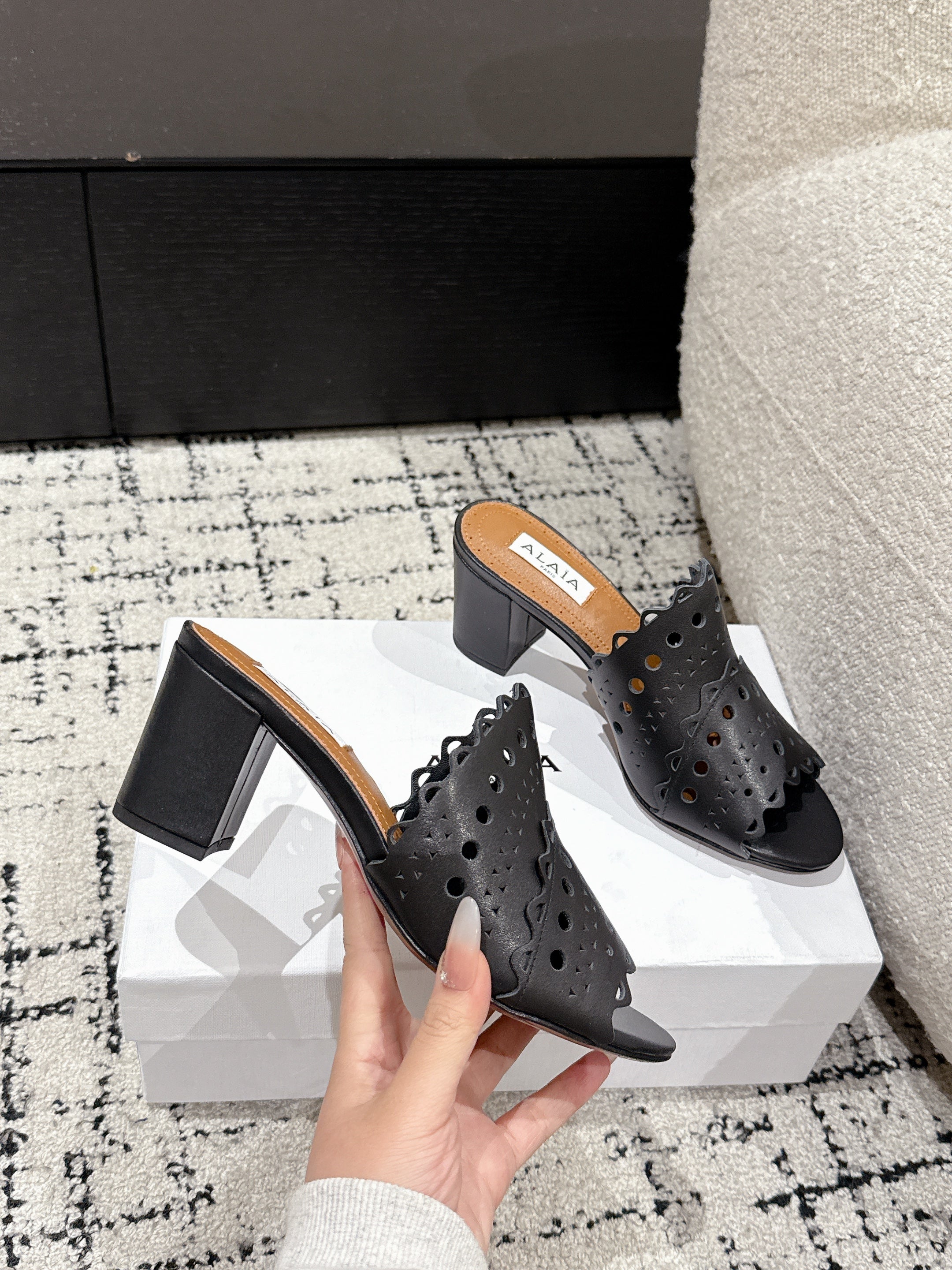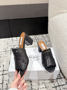 Alaia Vienne Mule Heeled Sandals 70mm Black Leather 232502