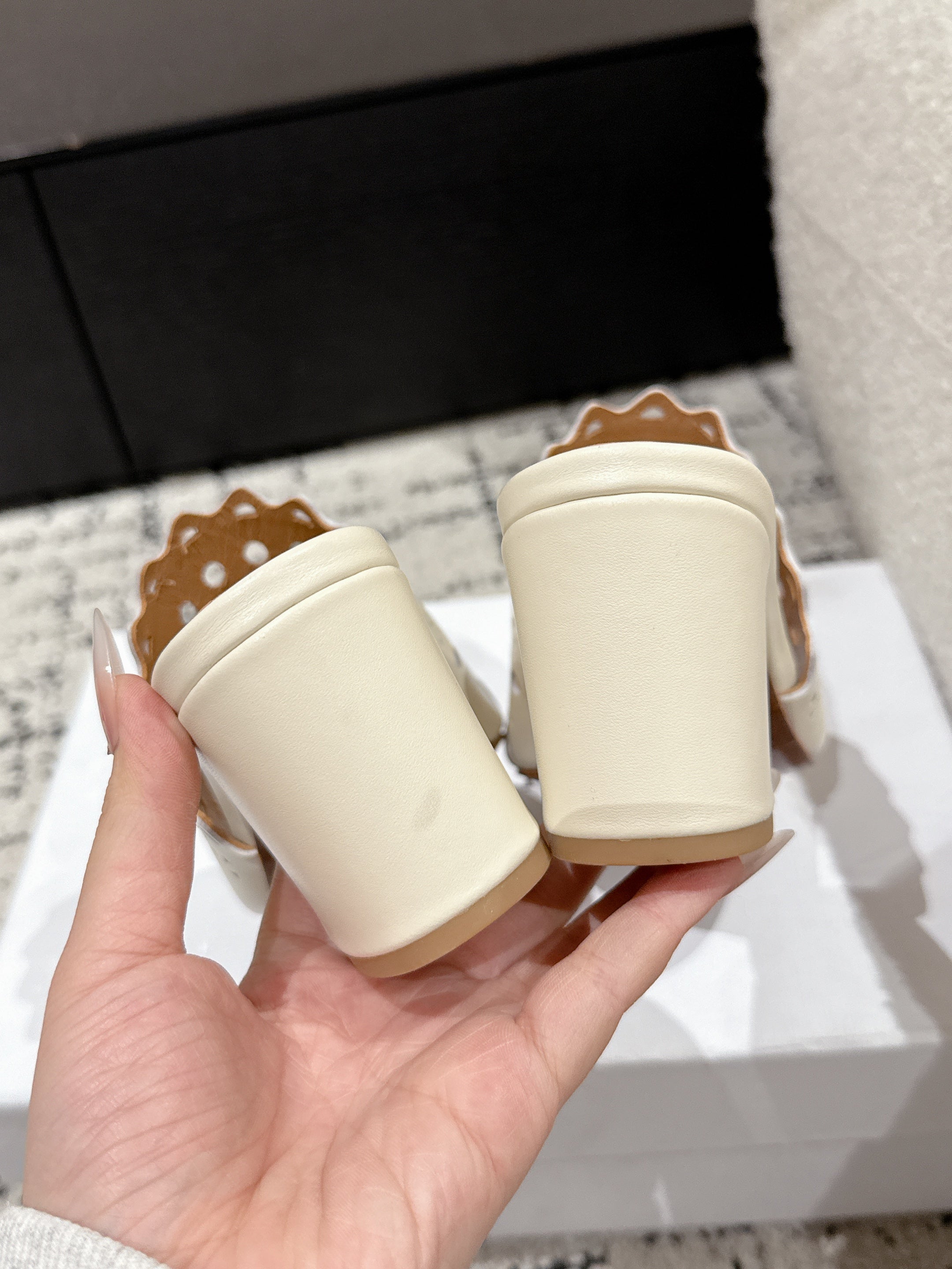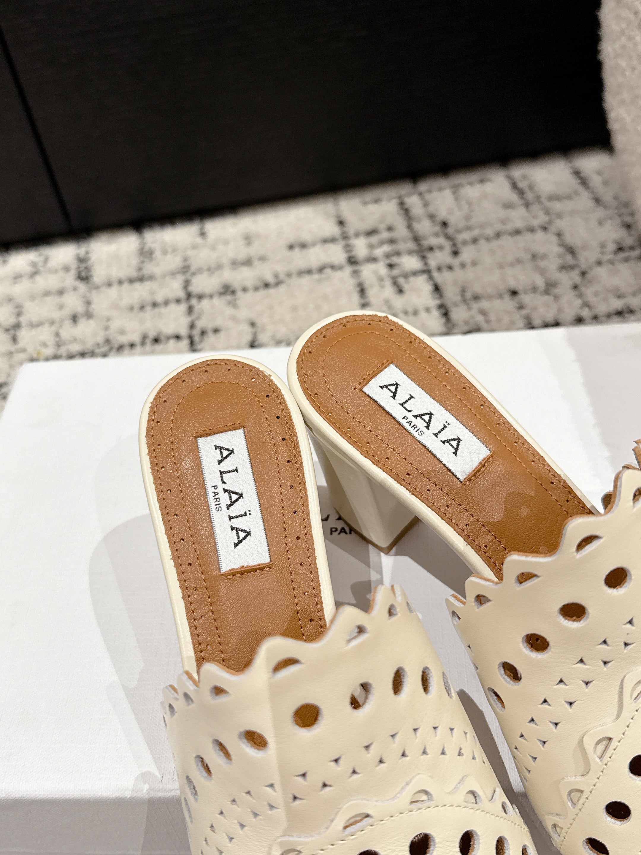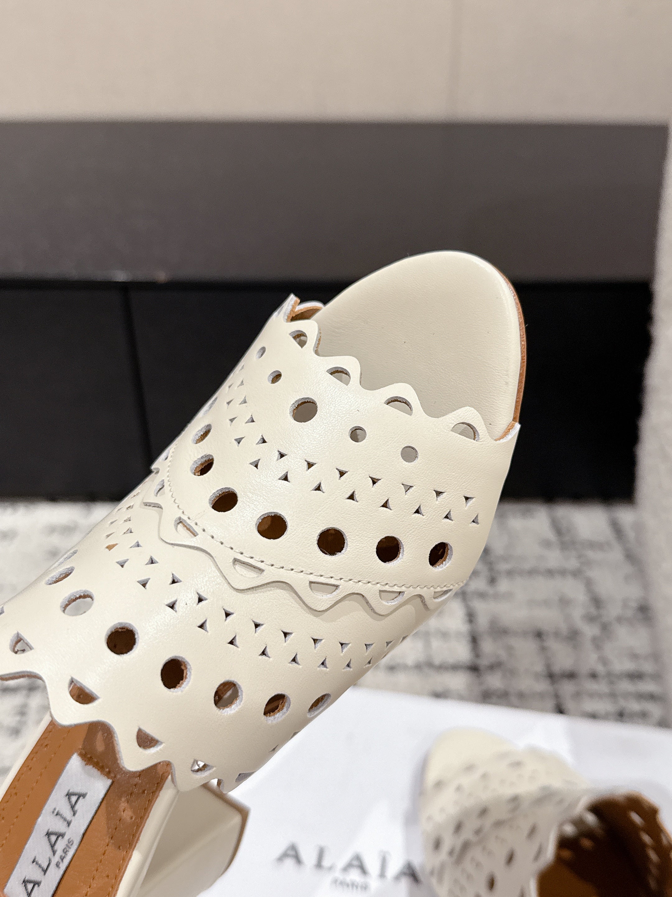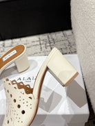 Alaia Vienne Mule Heeled Sandals 70mm Cream Leather 232501