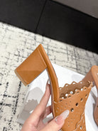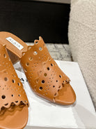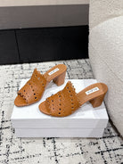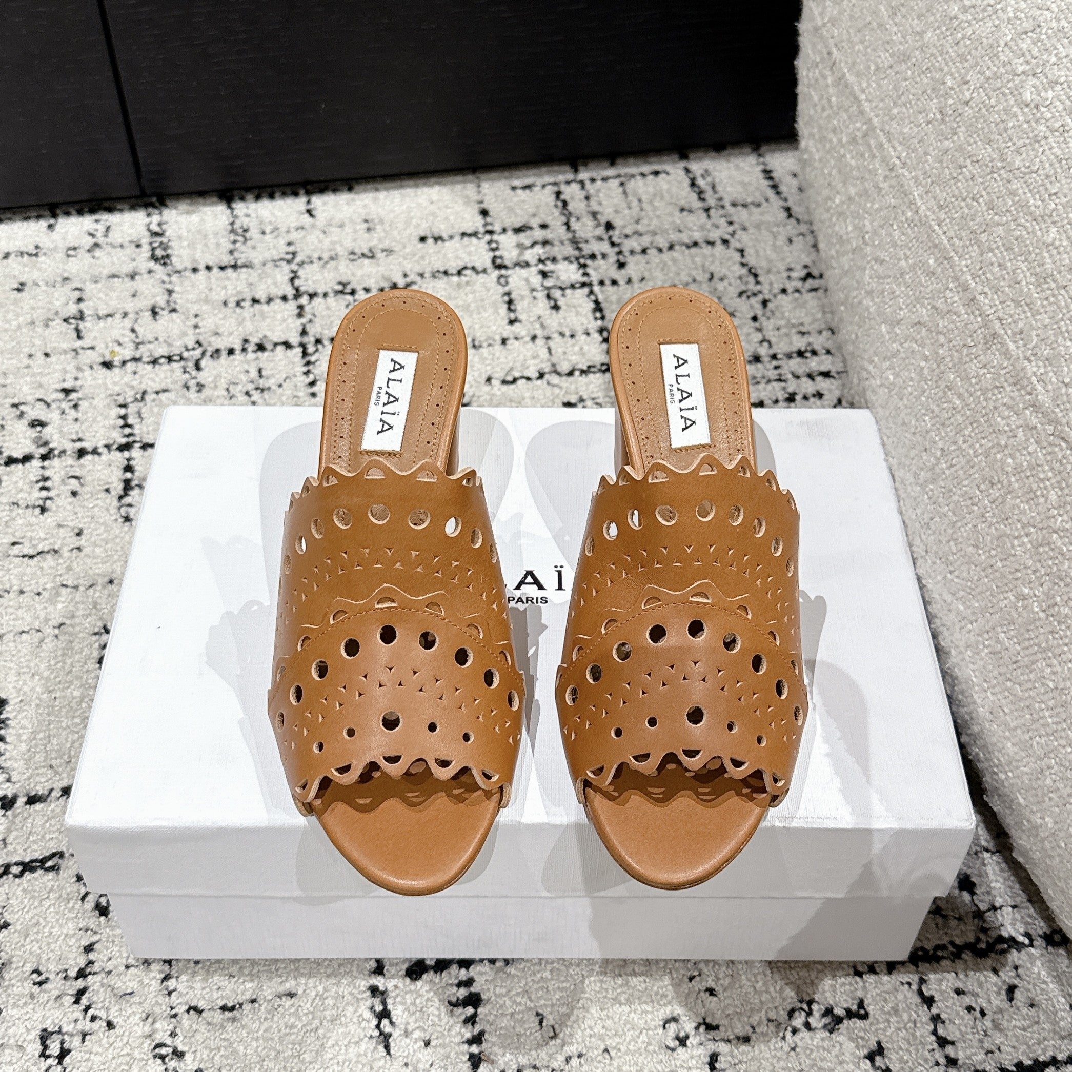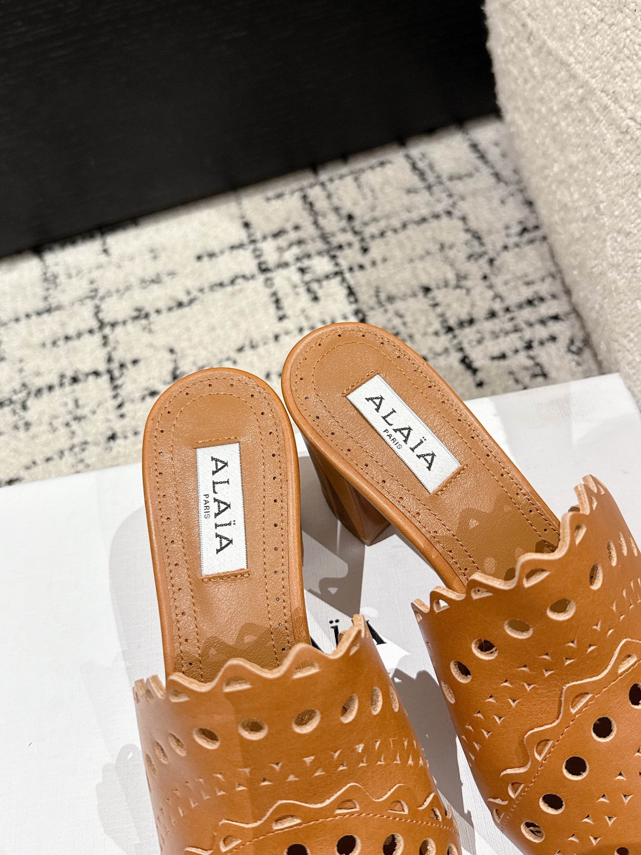 Alaia Vienne Mule Heeled Sandals 70mm Gold Leather 232503