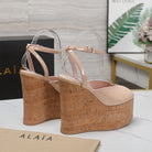 ALAIA WEDGE SANDAL IN BEIGE TAN GLOSSY CALFSKIN AND BEIGE RUBBER