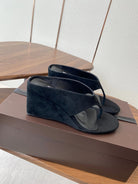 Alaia Wedge Thong Sandals 25s In Black Suede