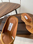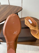 Alaia Wedge Thong Sandals 25s In Burnt Orange Suede