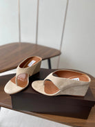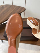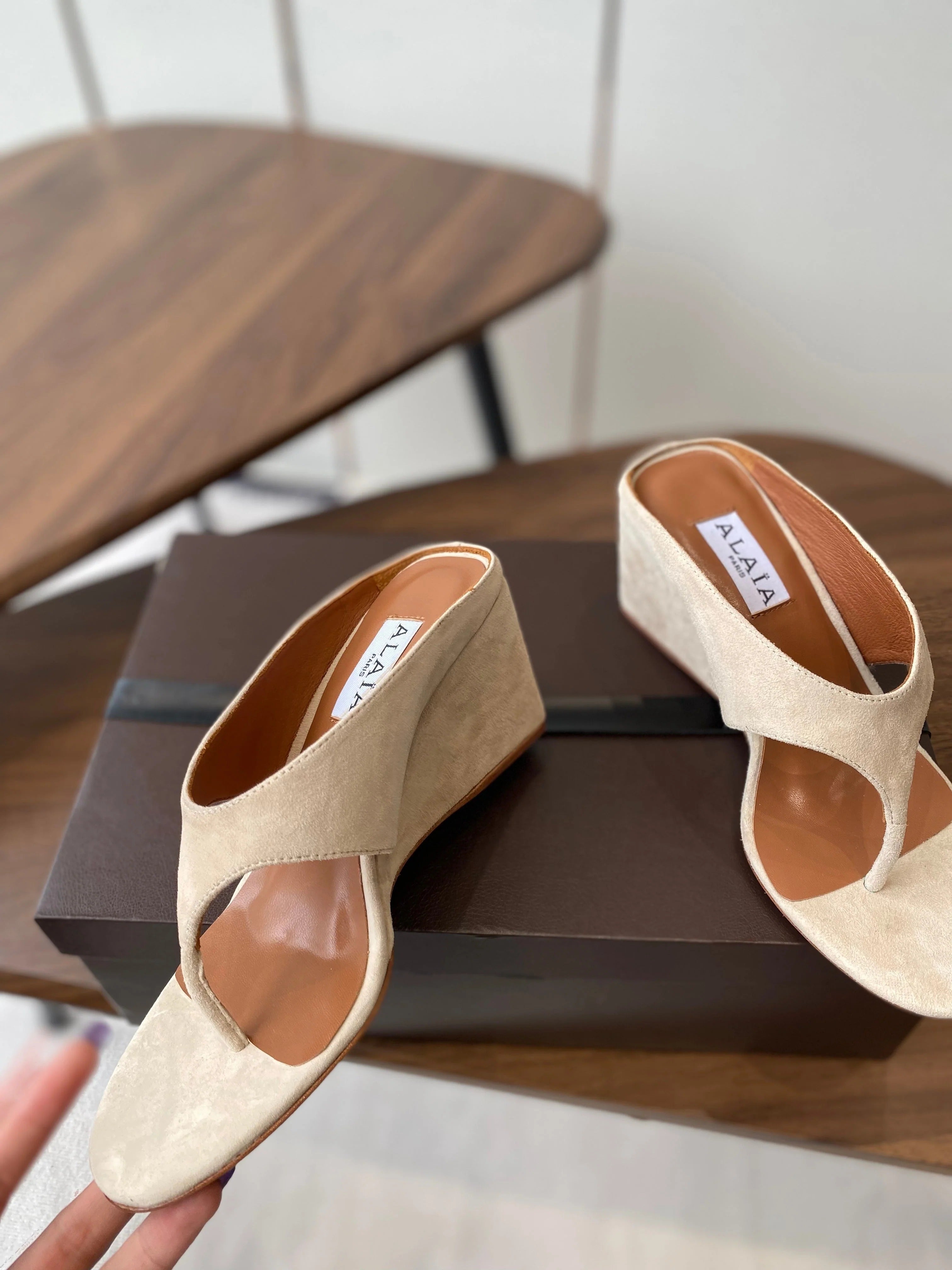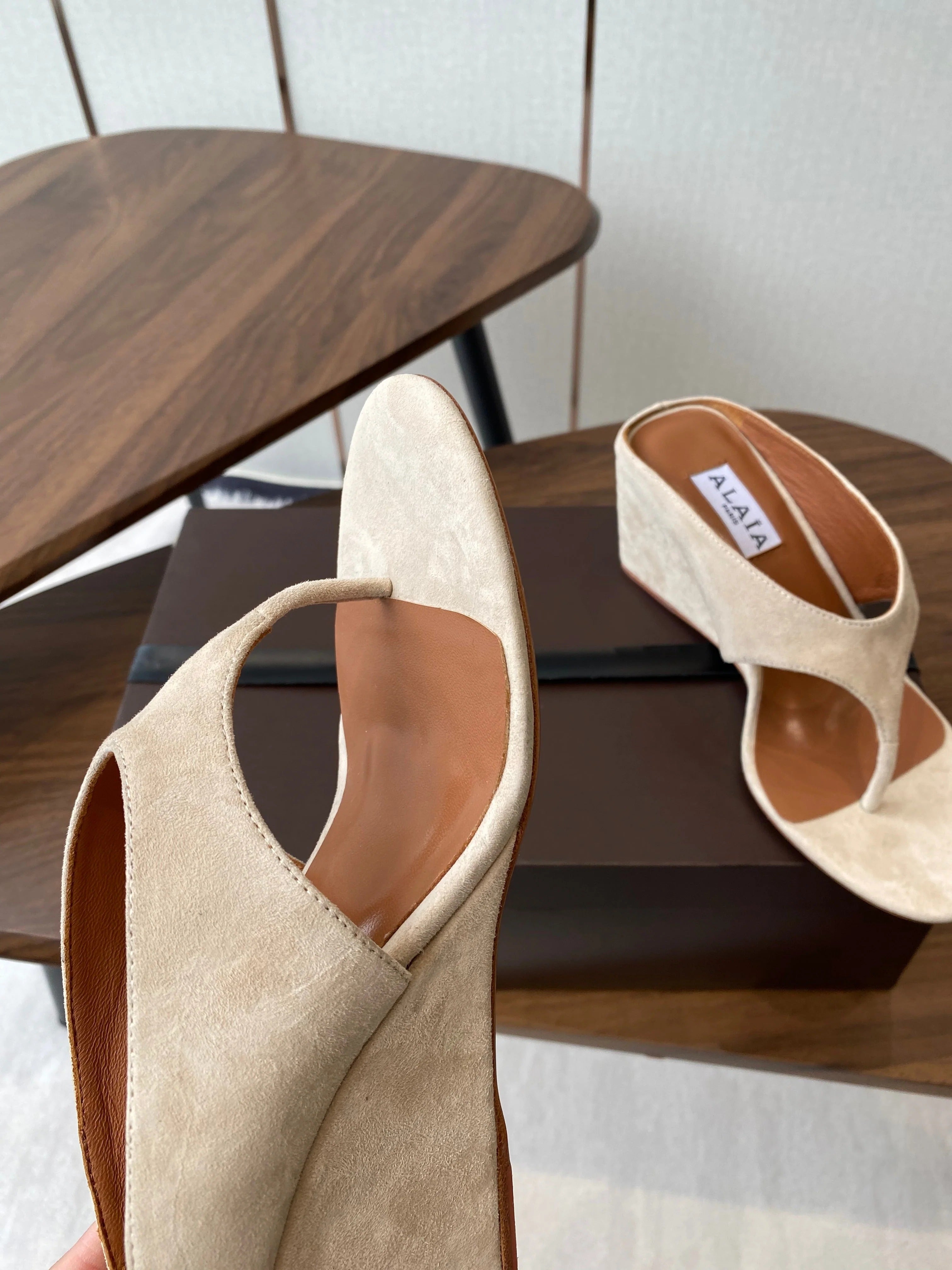 Alaia Wedge Thong Sandals 25s In Light Beige Suede
