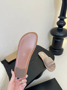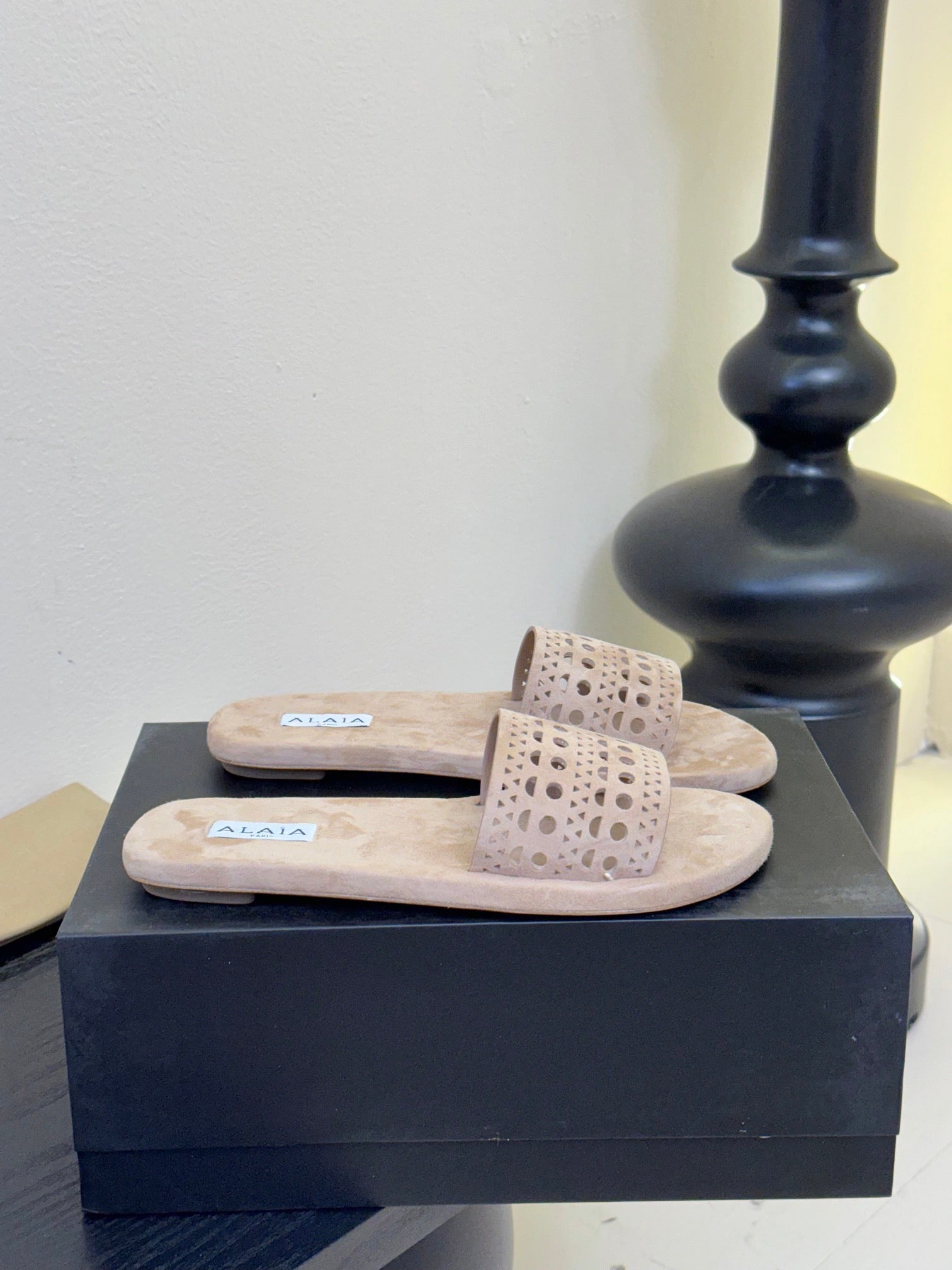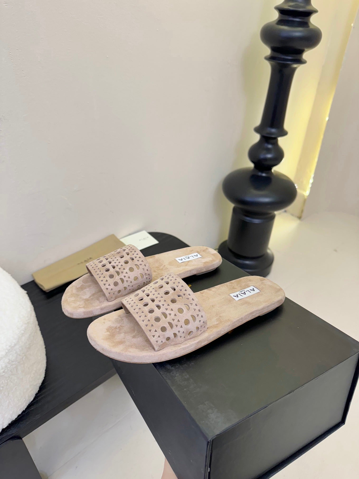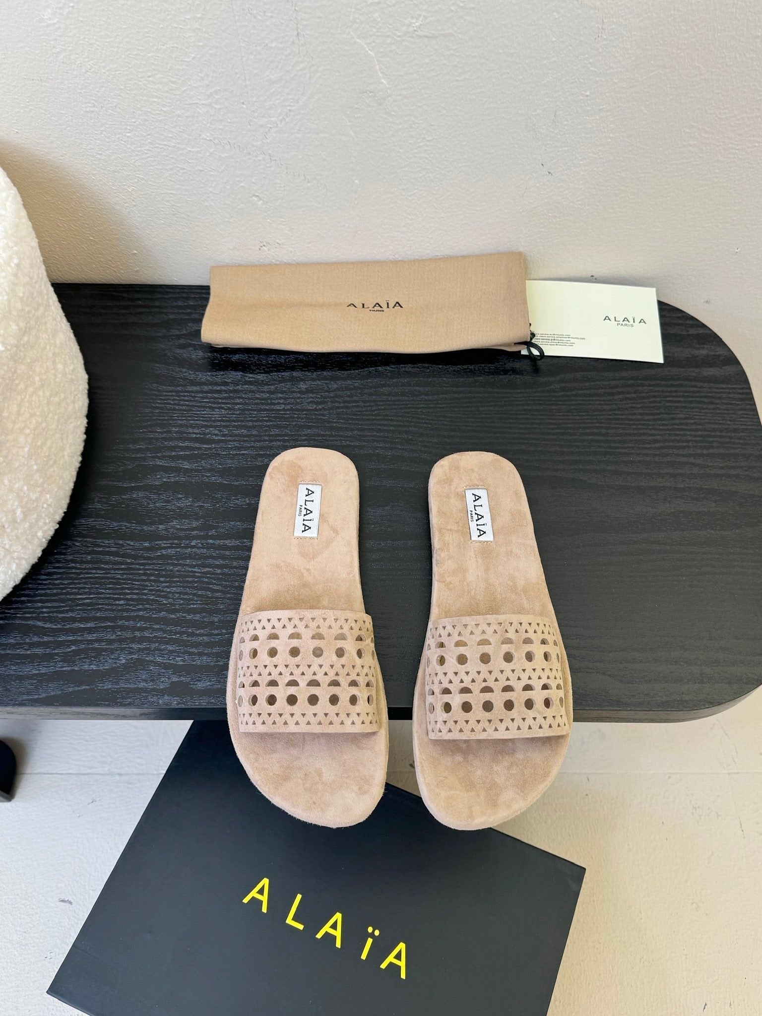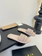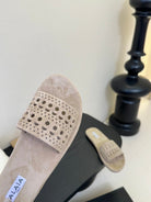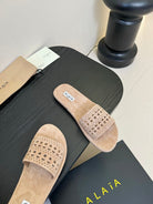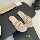 Alaia women laser-cut beige suede leather slide 235541