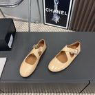 Alaila Criss Cross Ballet Flats In Beige Glossy Calfskin 996031