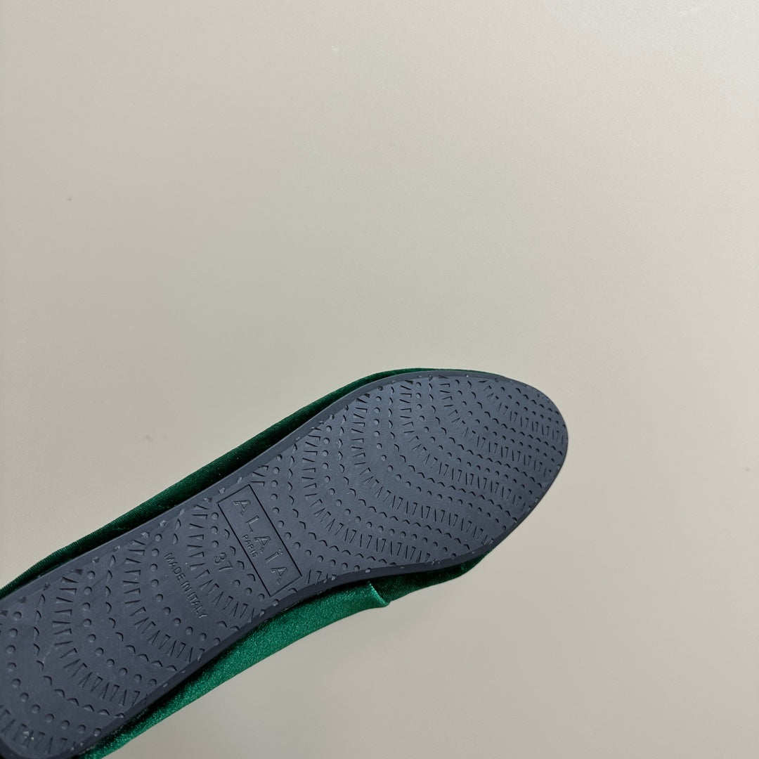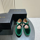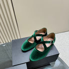 Alaila Criss Cross Ballet Flats In Dark Green Velvet 920787
