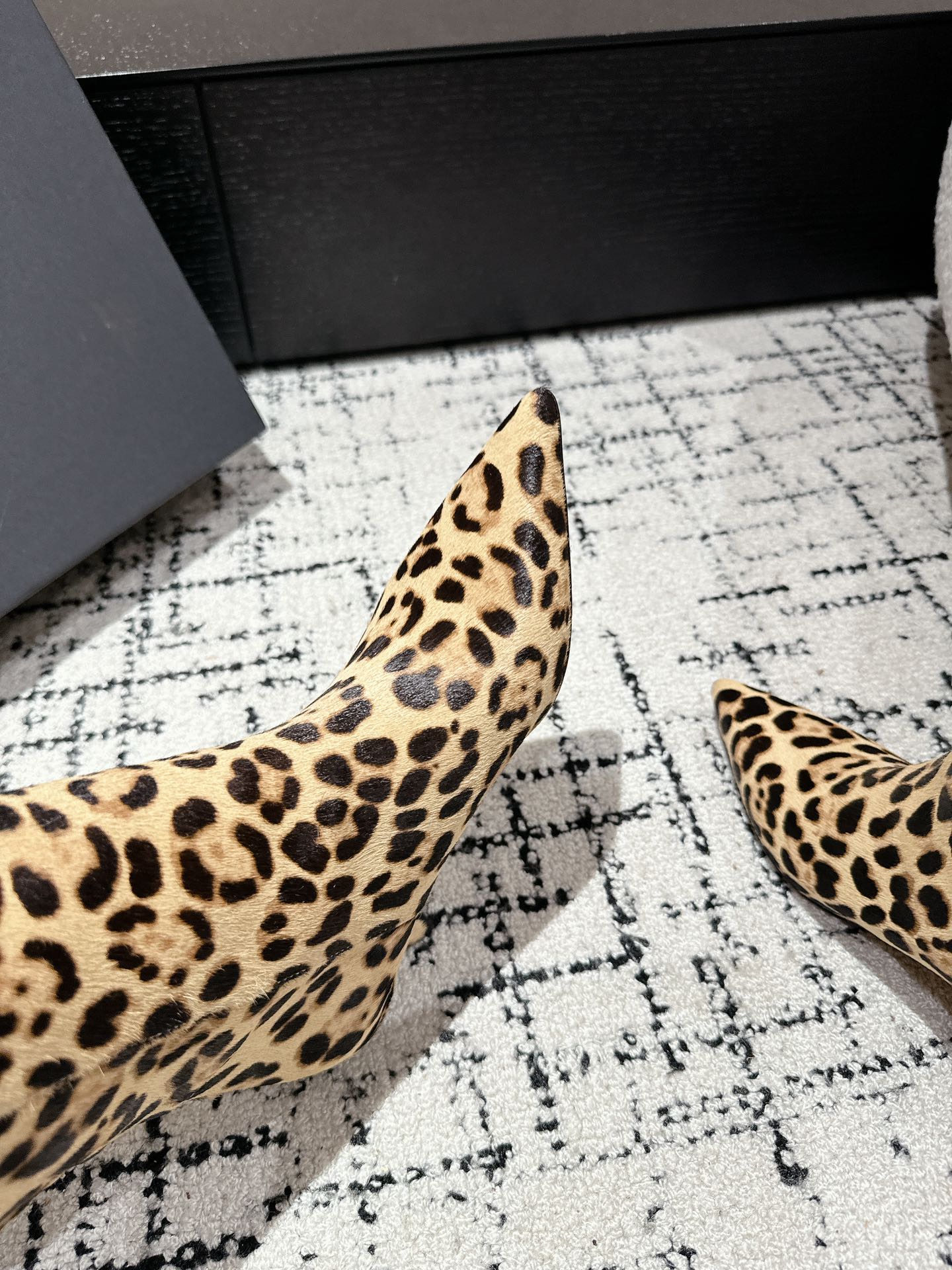 Alaila High Boots 60mm In Light Yellow Calfskin Horsehair Leopard Print 916740