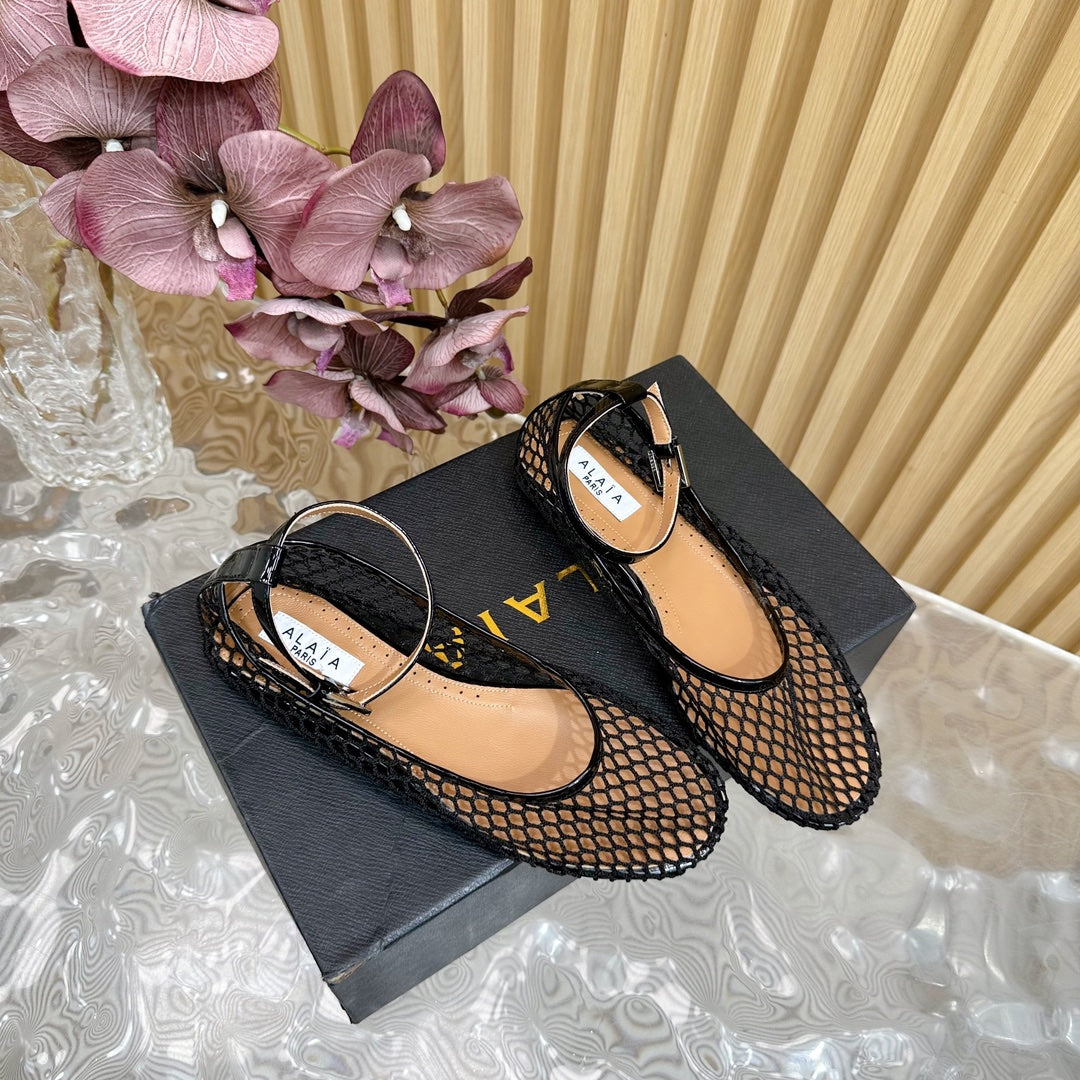 Alaila Mary Jane In Black Mesh Fabric 103020