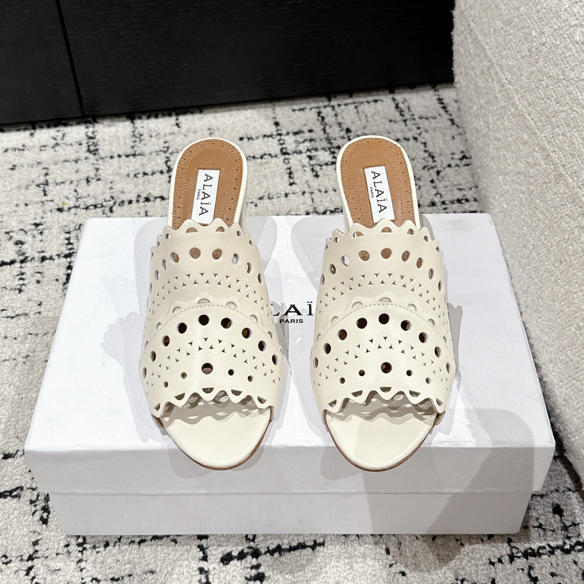 Alaia Vienne Mule Heeled Sandals 70mm Cream Leather 232501