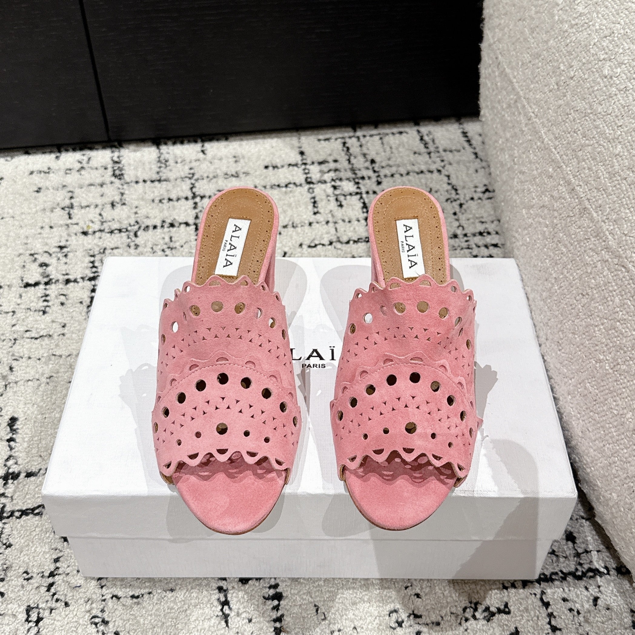 Alaia Vienne Mule Heeled Sandals 70mm Pink Suede Leather 232506