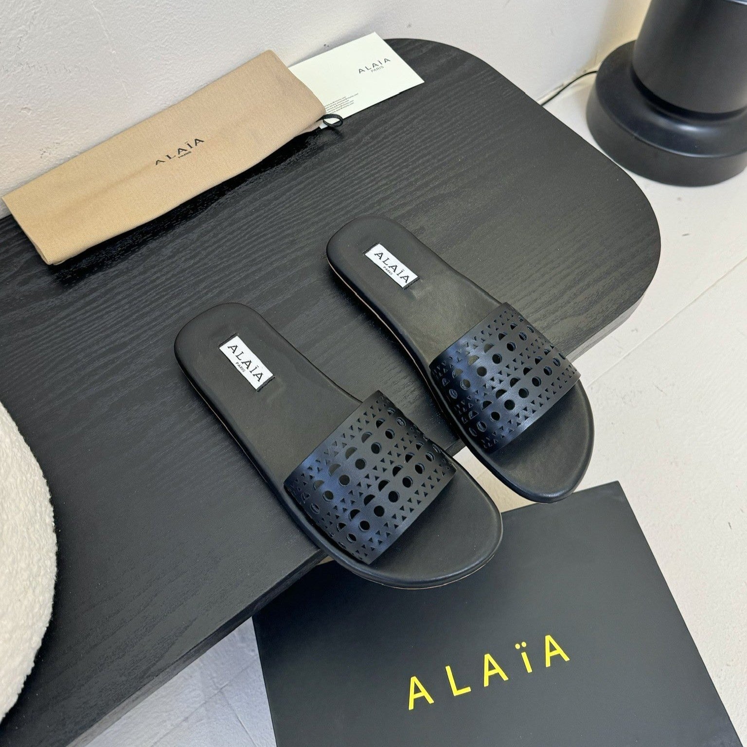 Alaia Vienne Mule Heeled Sandals 70mm Black Leather 232502