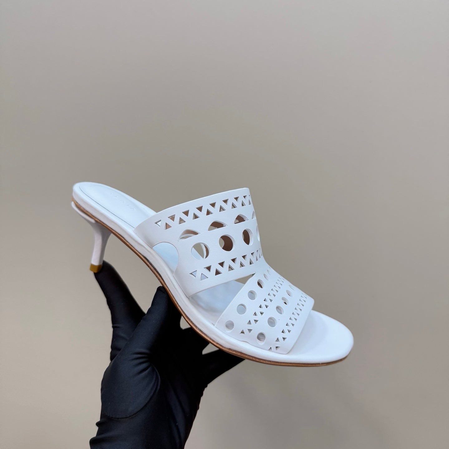 Alaia 2025 Vienne Cutout Kitten-Heel Slide Sandals White Leather 293650