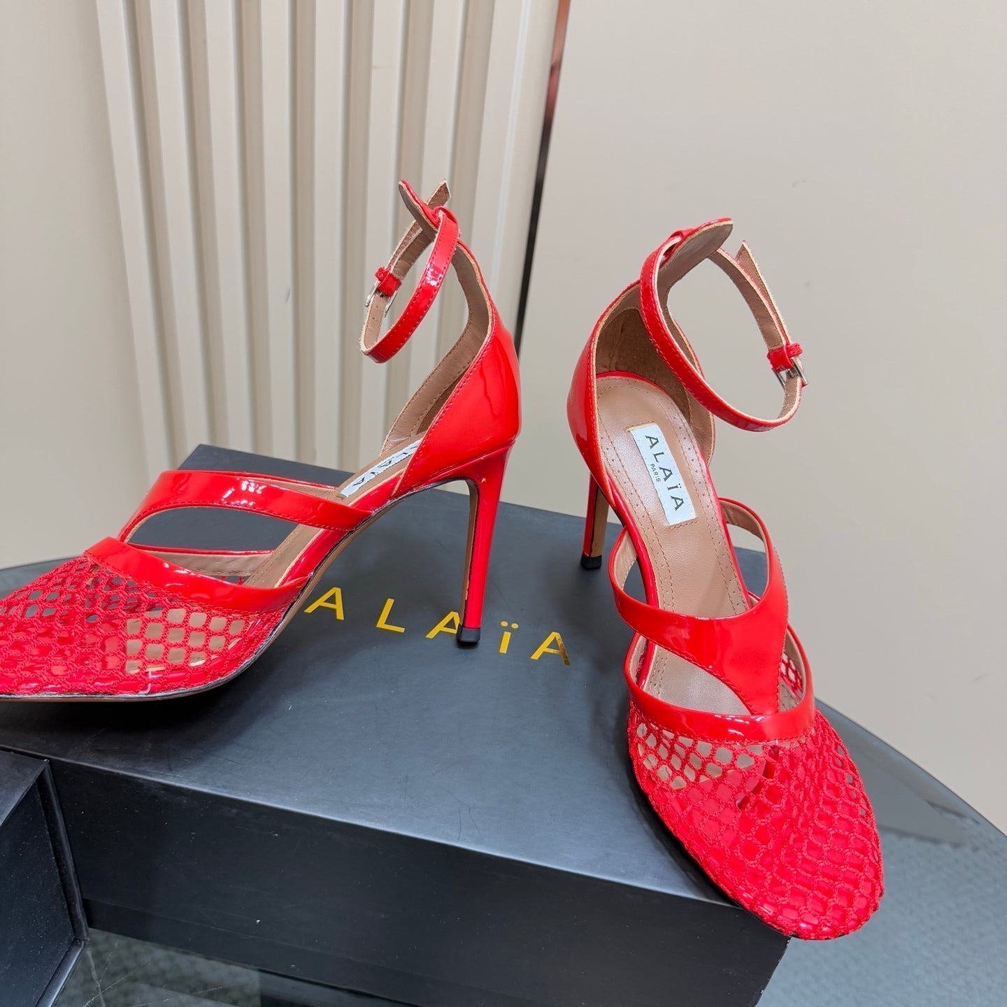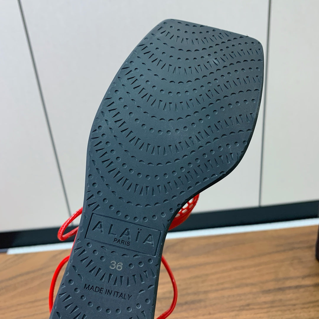 Alaia Fishnet Thong Heels Sandals Red Lambskin 299660