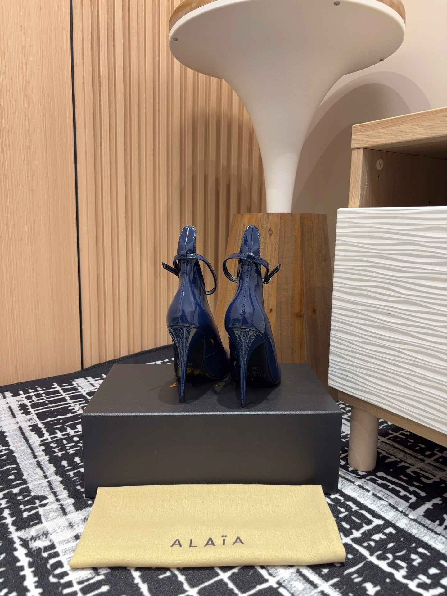 Alaia Decollete Pumps 105mm In Navy Blue Glossy Cowhide 121912